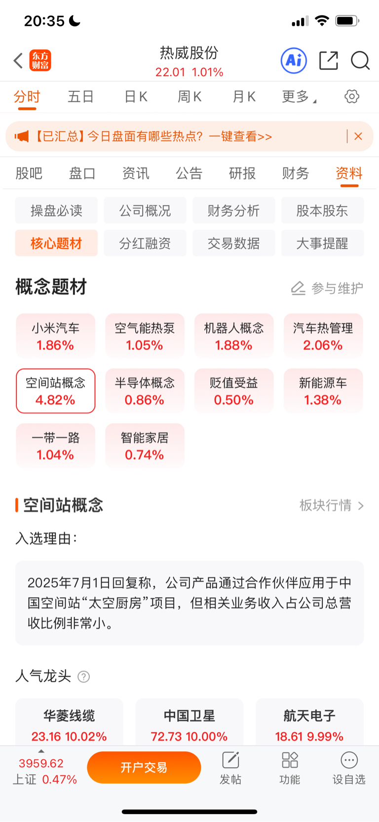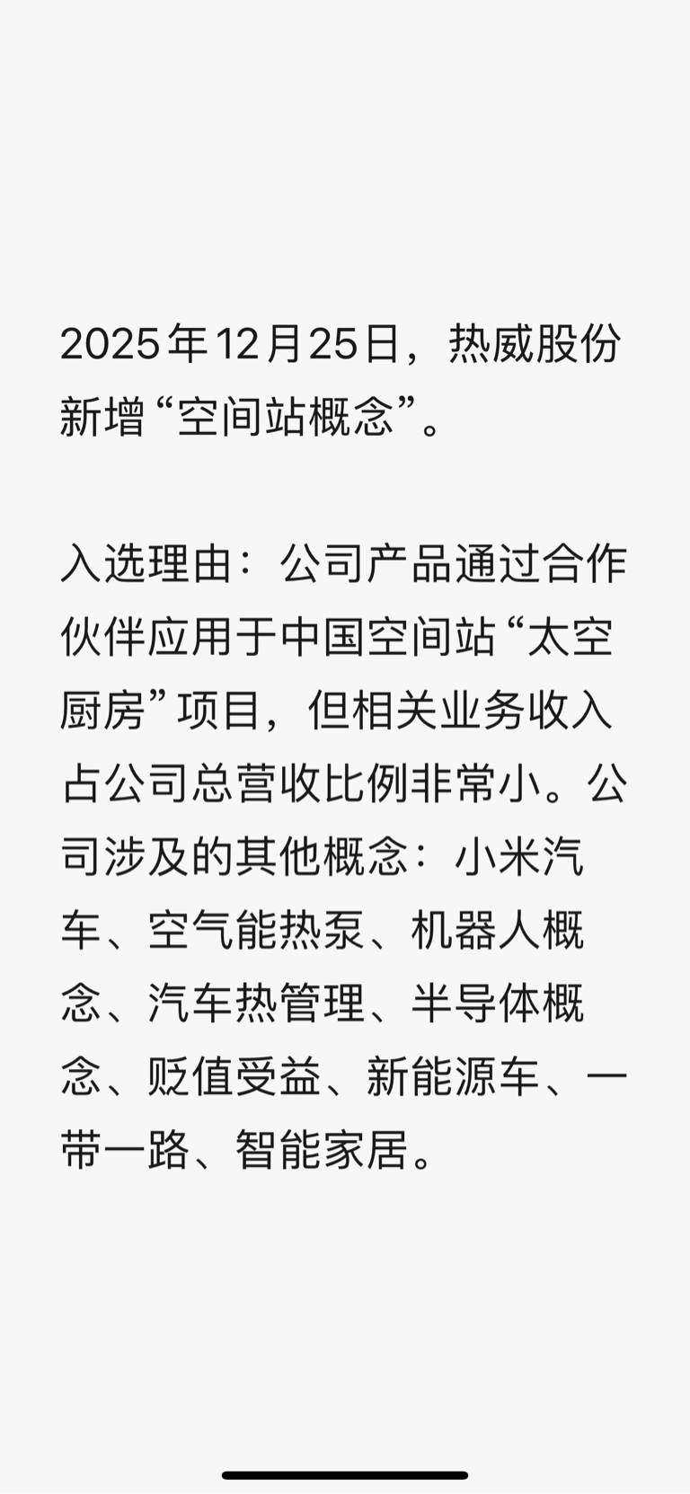 【概念速递】热威股份新增“空间站概念”