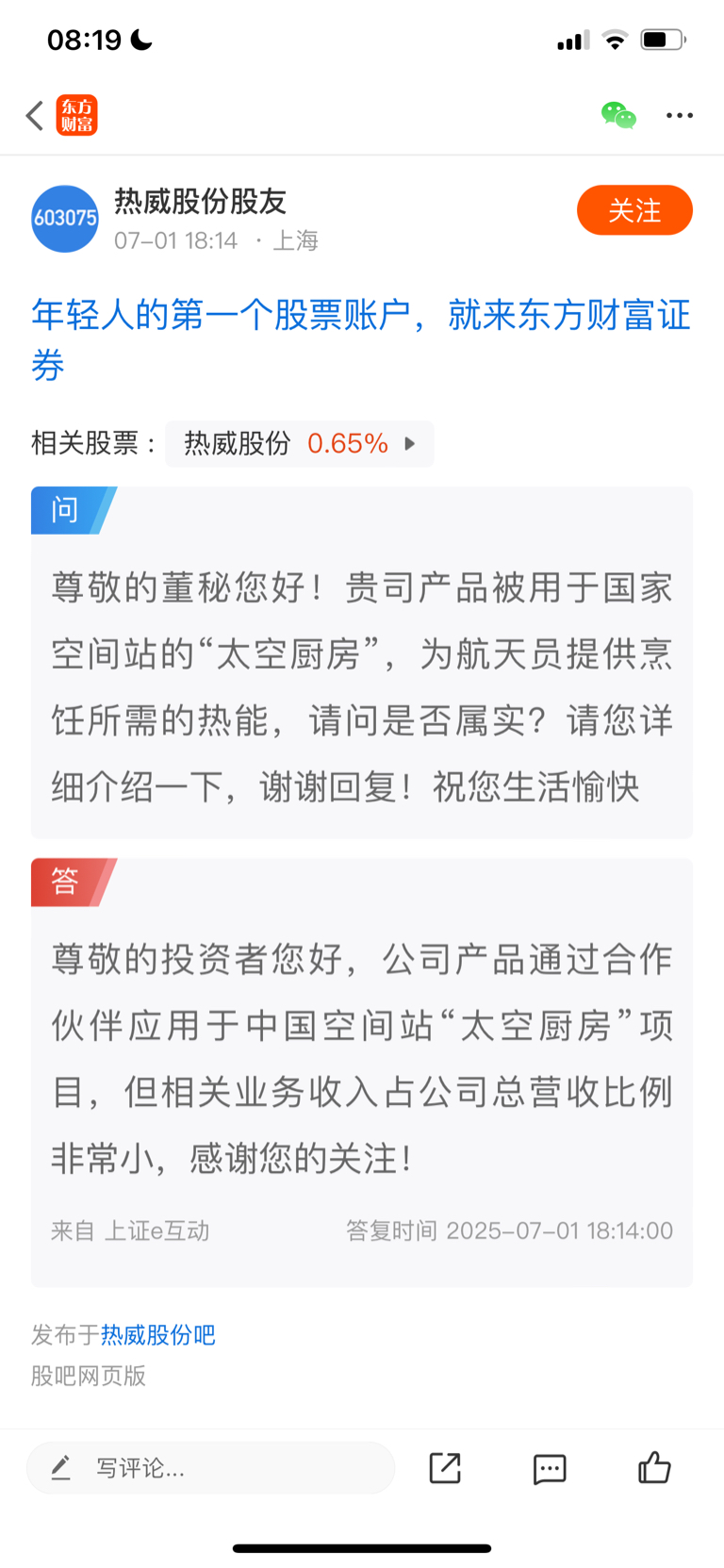 温馨提示: 1.根据《证券法》规定,禁止编造、传播虚假信息或者误导性信息,扰乱证券市场;2.用户在本社区发表的所有资料、言论等仅代表个人观点,与本网站立场无关,不对您构成任何投资建议。用户应基于自己的独立判断,自行决定证券投资并承担相应风险。《东方财富社区管理规定》