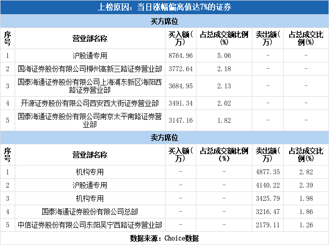 今日龙虎榜单上出现了沪股通的身影,占据了买一、卖二的位置,净买入4624.74万元,占当日成交总额的2.67%。