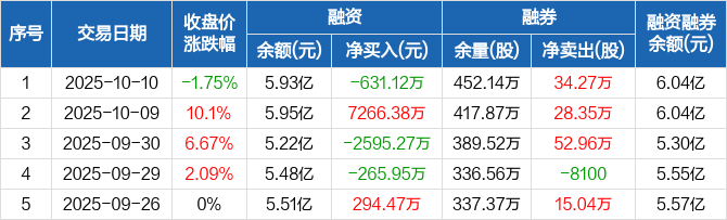 和邦生物:融资净偿还631.12万元,融资余额5.93亿元(10-10)