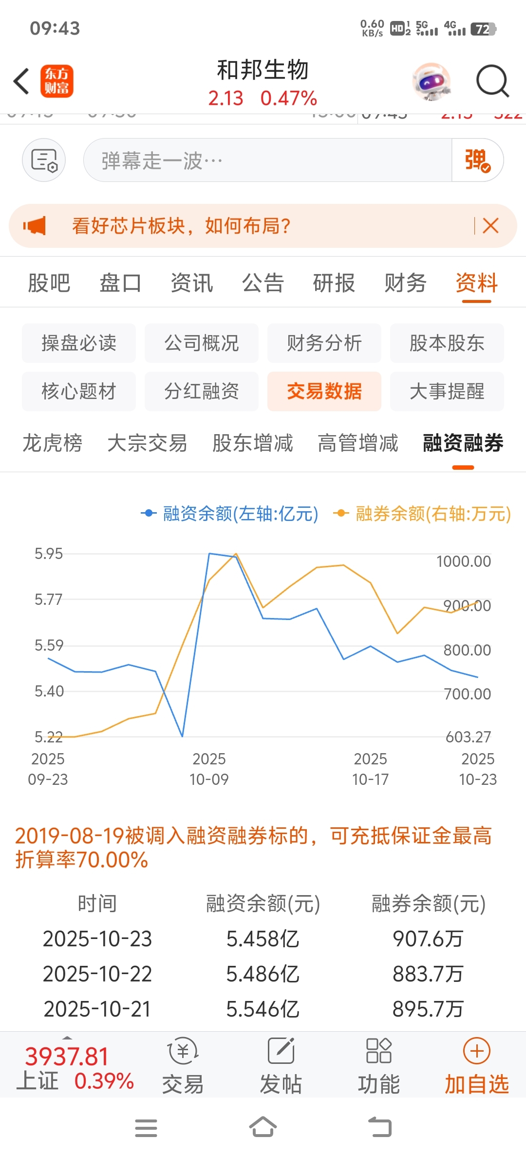 $和邦生物(SH603077)$ 融券余额上行,融资余额下行,短期内不会有起色!