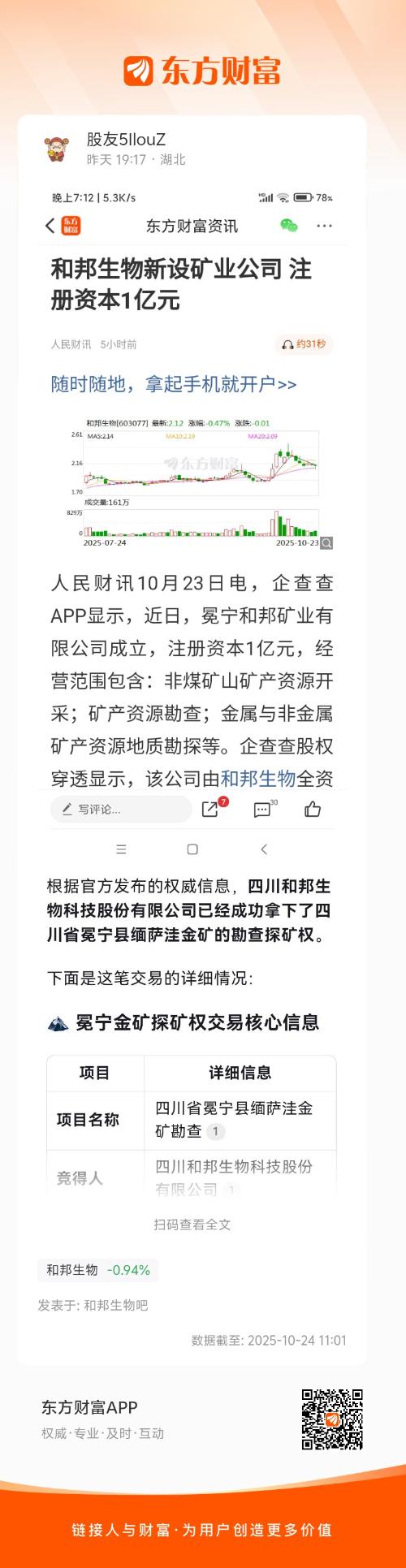 $和邦生物(SH603077)$  准备数板,已经明确有金矿并落实开采