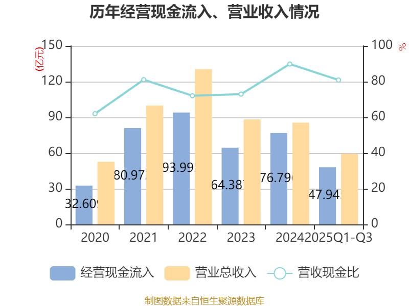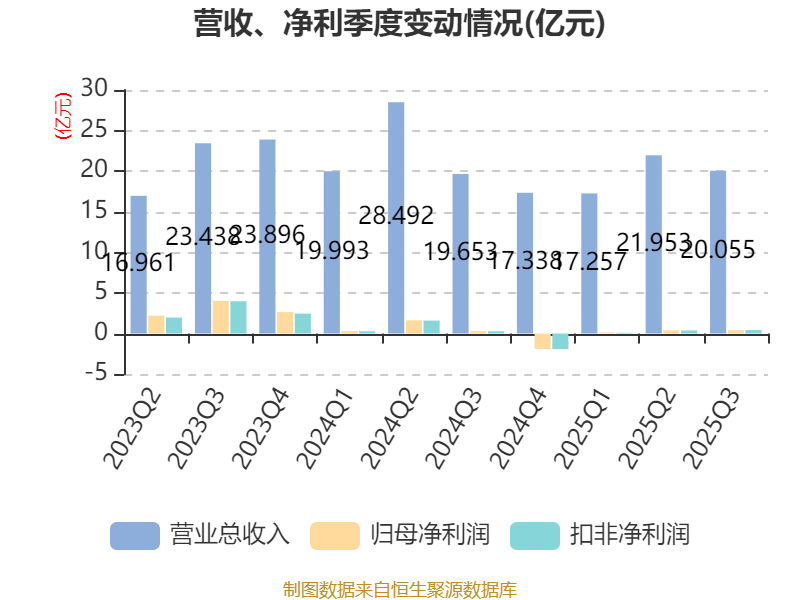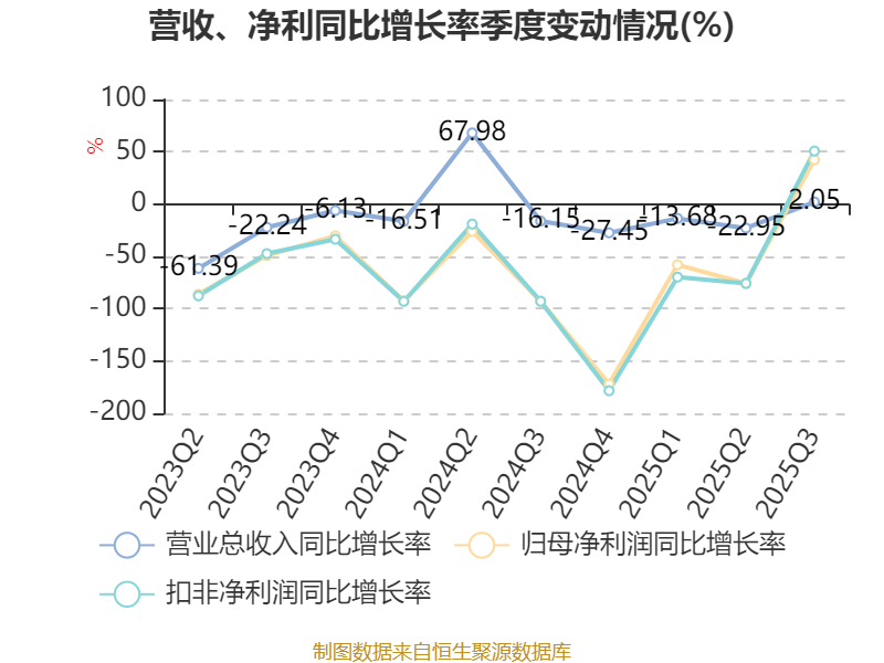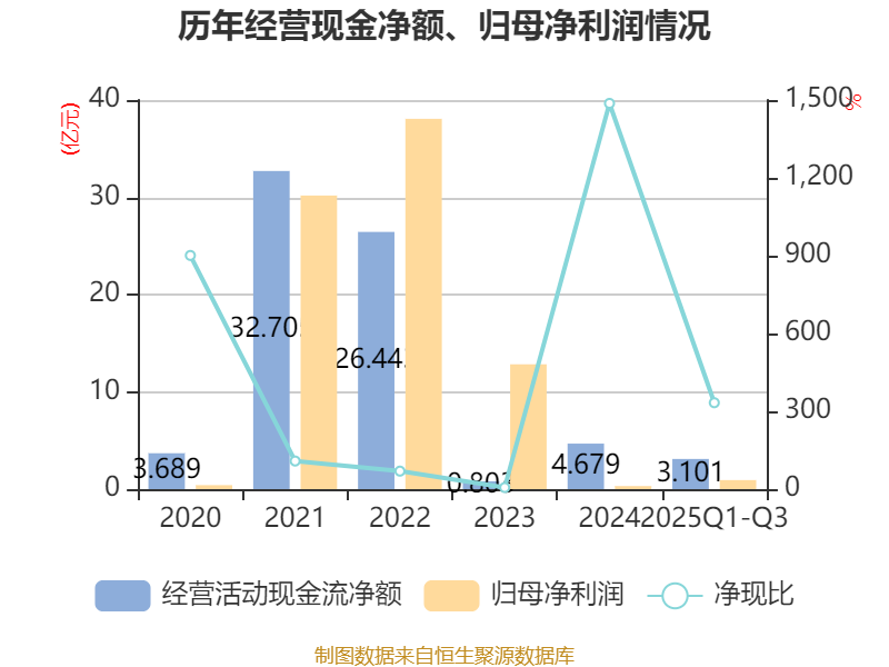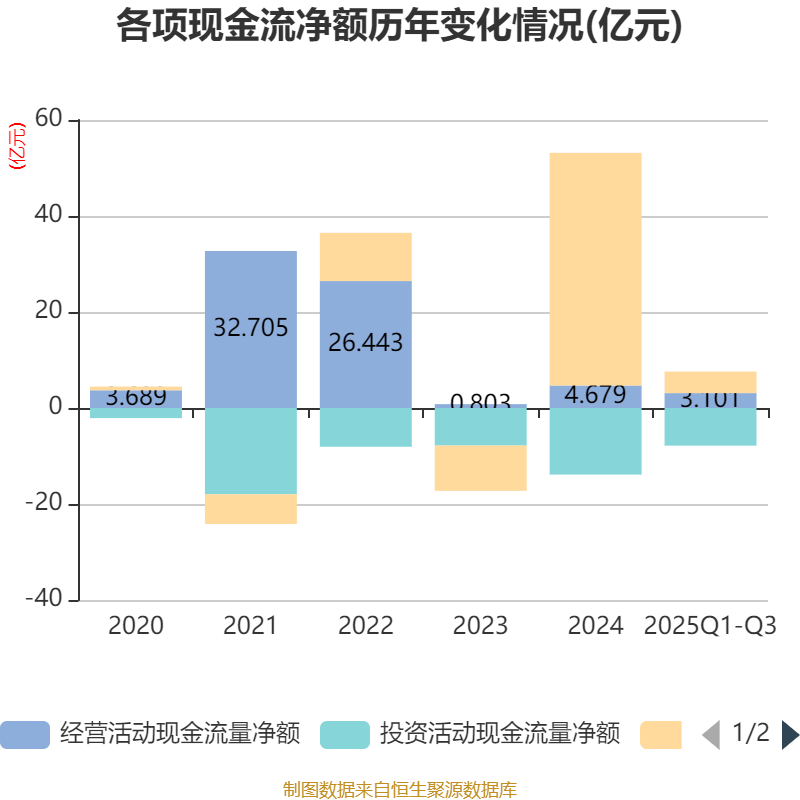 2025年前三季度,公司经营活动现金流净额为3.1亿元,同比增加4.47亿元;筹资活动现金流净额4.48亿元,同比增加8018.86万元;投资活动现金流净额-7.84亿元,上年同期为-7.65亿元。