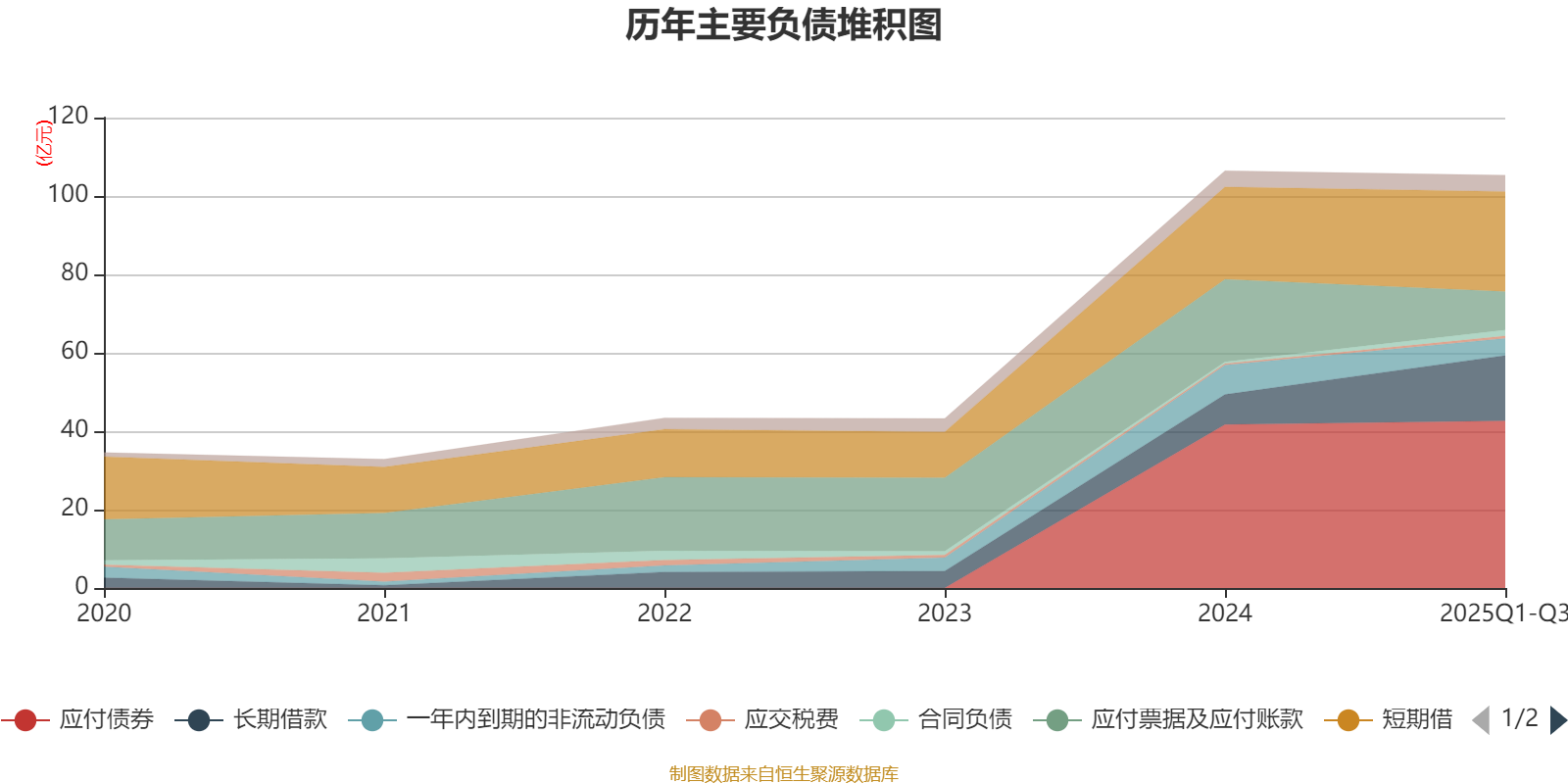 负债重大变化方面,截至2025年三季度末,公司应付票据及应付账款较上年末减少53.34%,占公司总资产比重下降3.75个百分点;长期借款较上年末增加118.02%,占公司总资产比重上升3.12个百分点;一年内到期的非流动负债较上年末减少42.21%,占公司总资产比重下降1.05个百分点;短期借款较上年末增加8.44%,占公司总资产比重上升0.77个百分点。