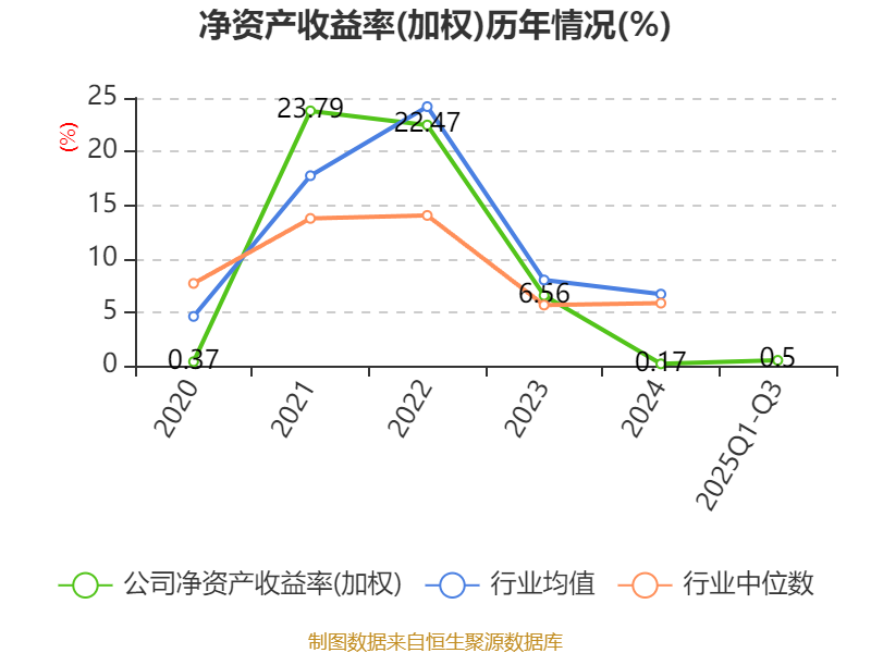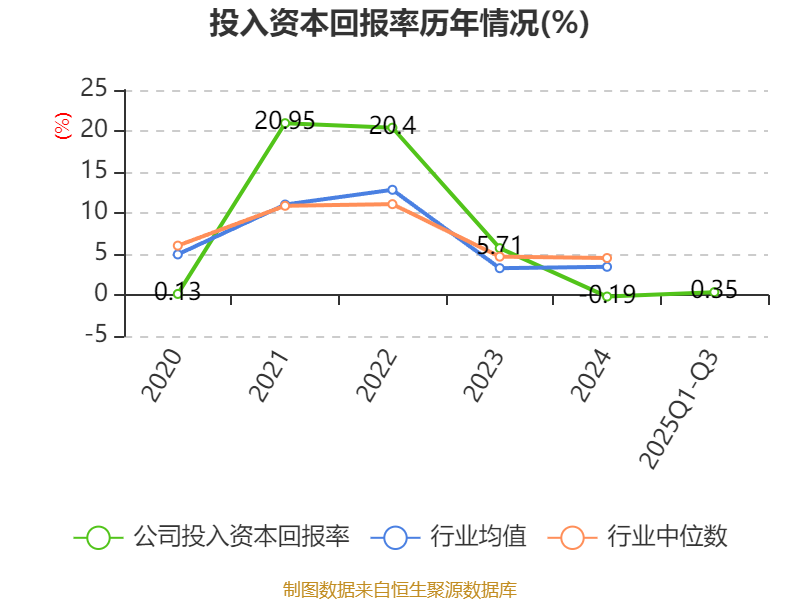 盈利能力方面, 2025年前三季度公司加权平均净资产收益率为0.5%,同比下降0.66个百分点。公司2025年前三季度投入资本回报率为0.35%,较上年同期下降0.62个百分点。