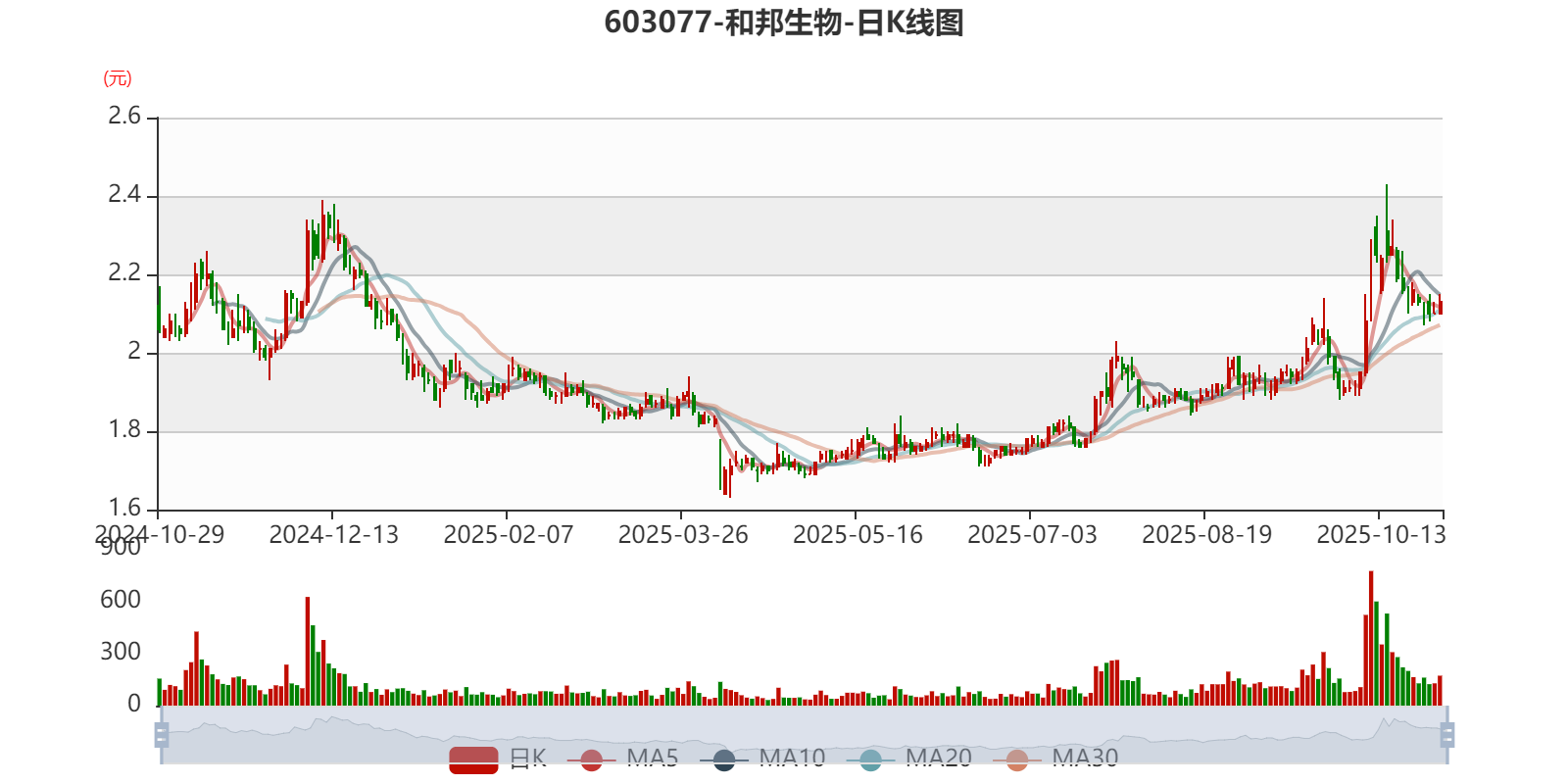 以10月28日收盘价计算,和邦生物目前市盈率(TTM)约为-194.44倍,市净率(LF)约1.02倍,市销率(TTM)约2.46倍。
