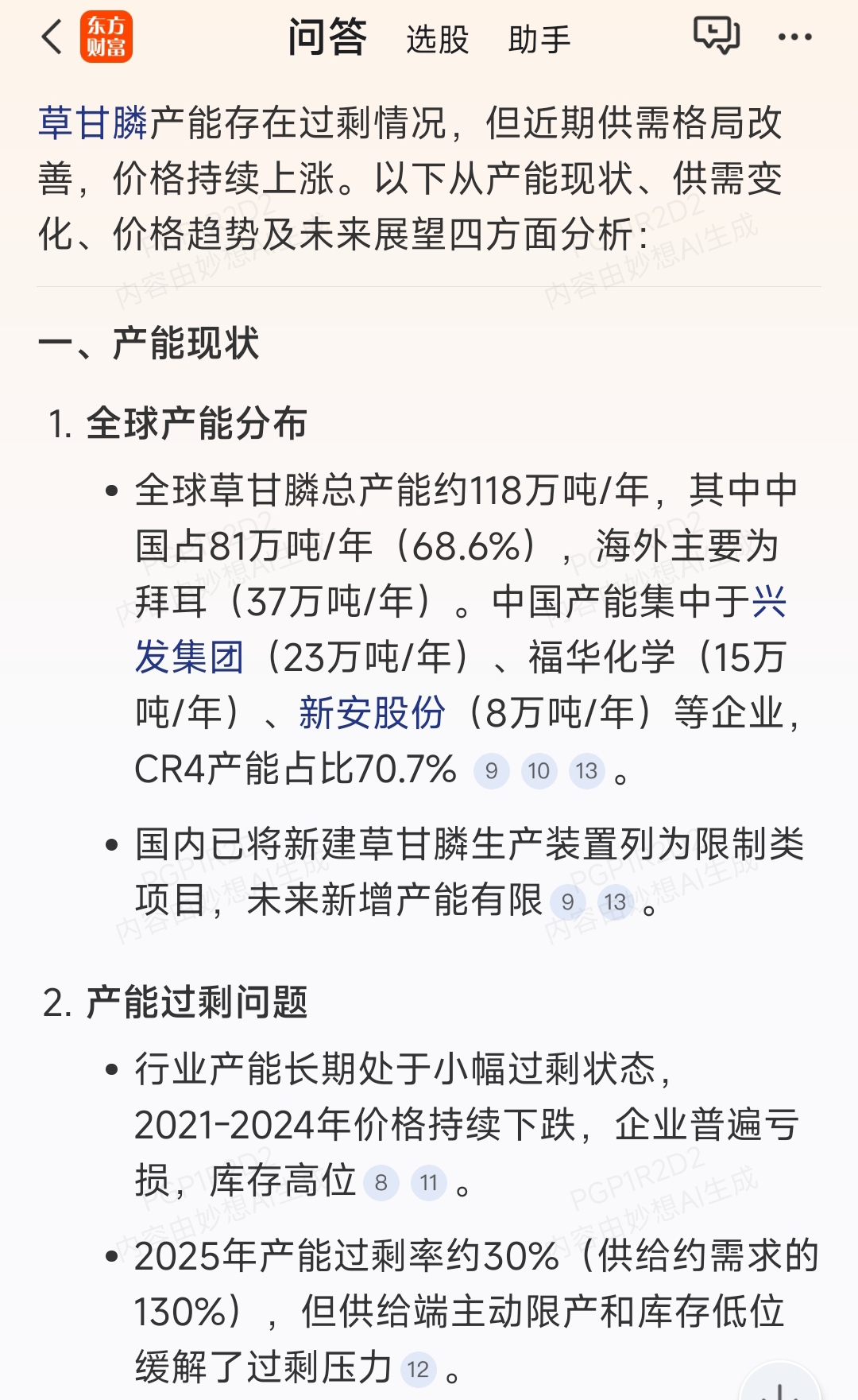 贺棒棒和管理层怎敢新建85万吨草甘膦产能!看妙想答案: