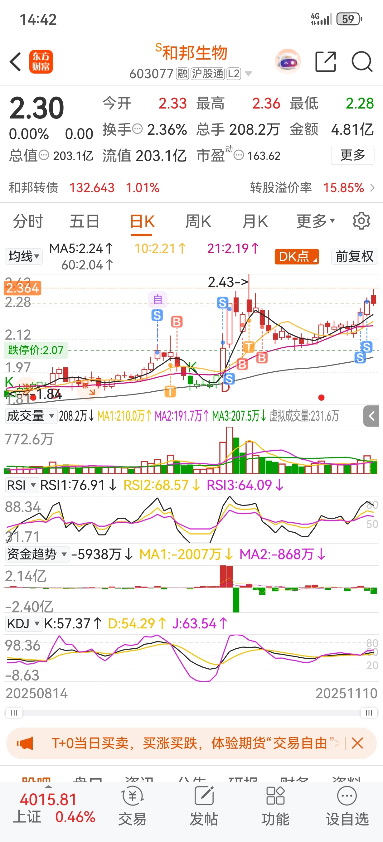 $和邦生物(SH603077)$ 看着我手里的成本线表演吗?不让我红,那就一直拿着,不吃肉不走,有的日时间。
