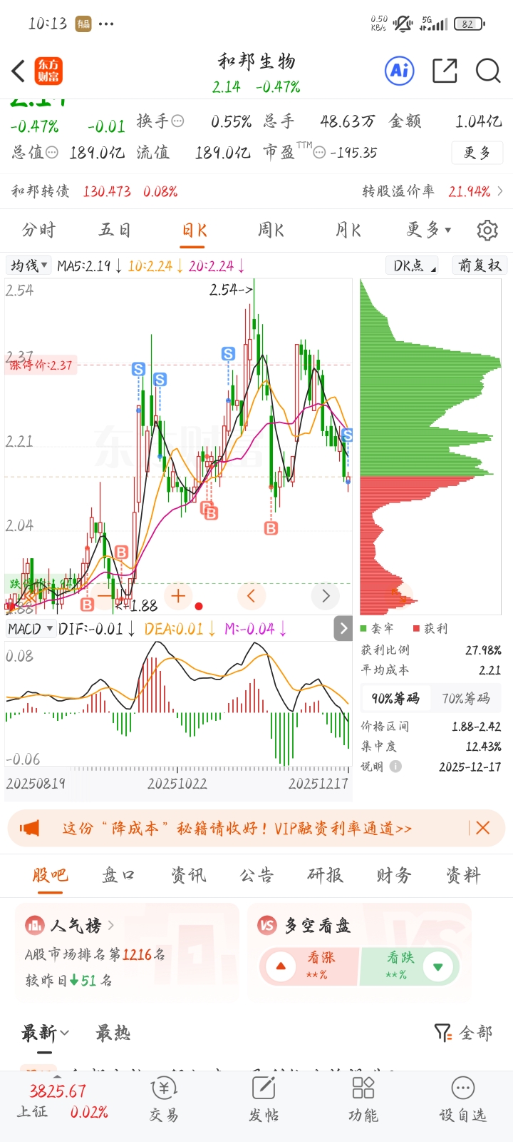 $和邦生物(SH603077)$ 怕了!再不走该赔钱了
