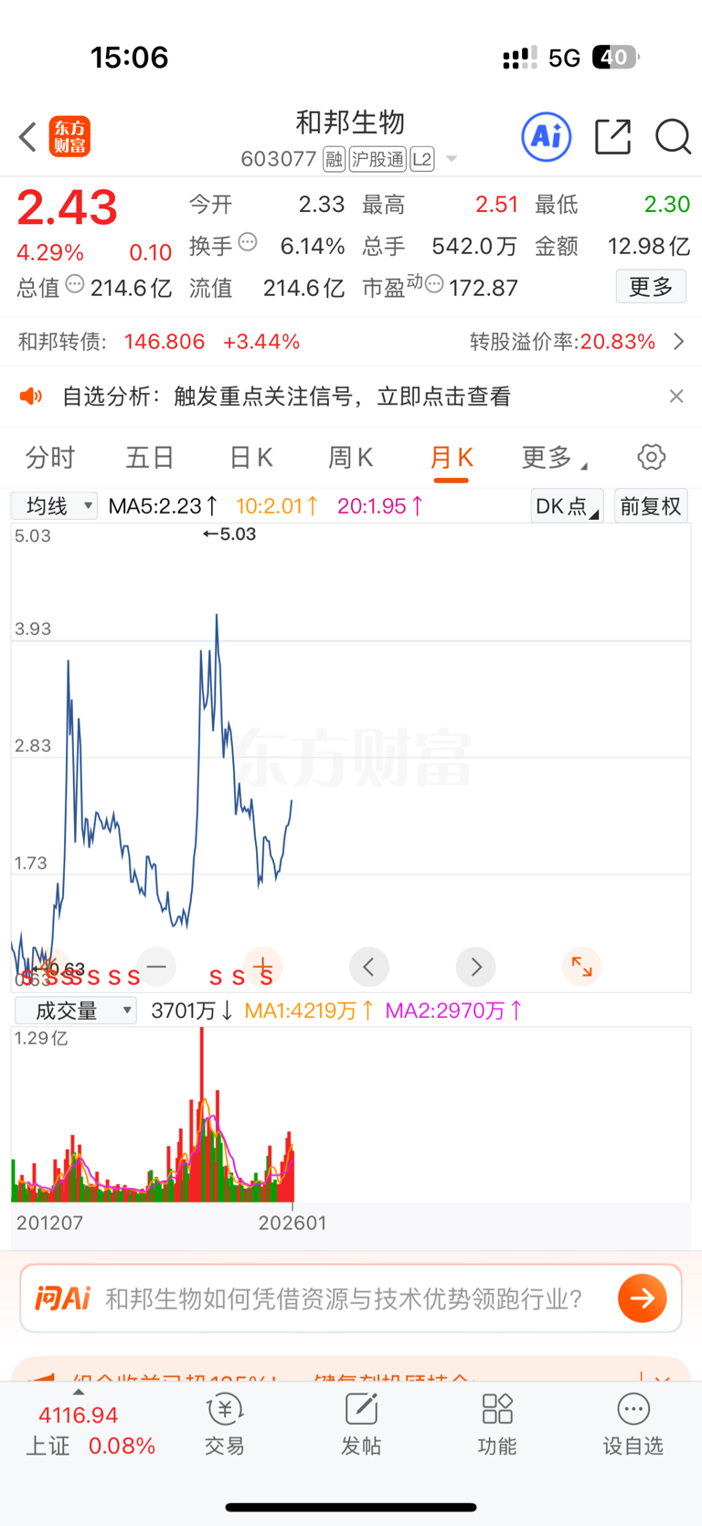 $和邦生物(SH603077)$ 这轮大牛市能不能上六块钱啊