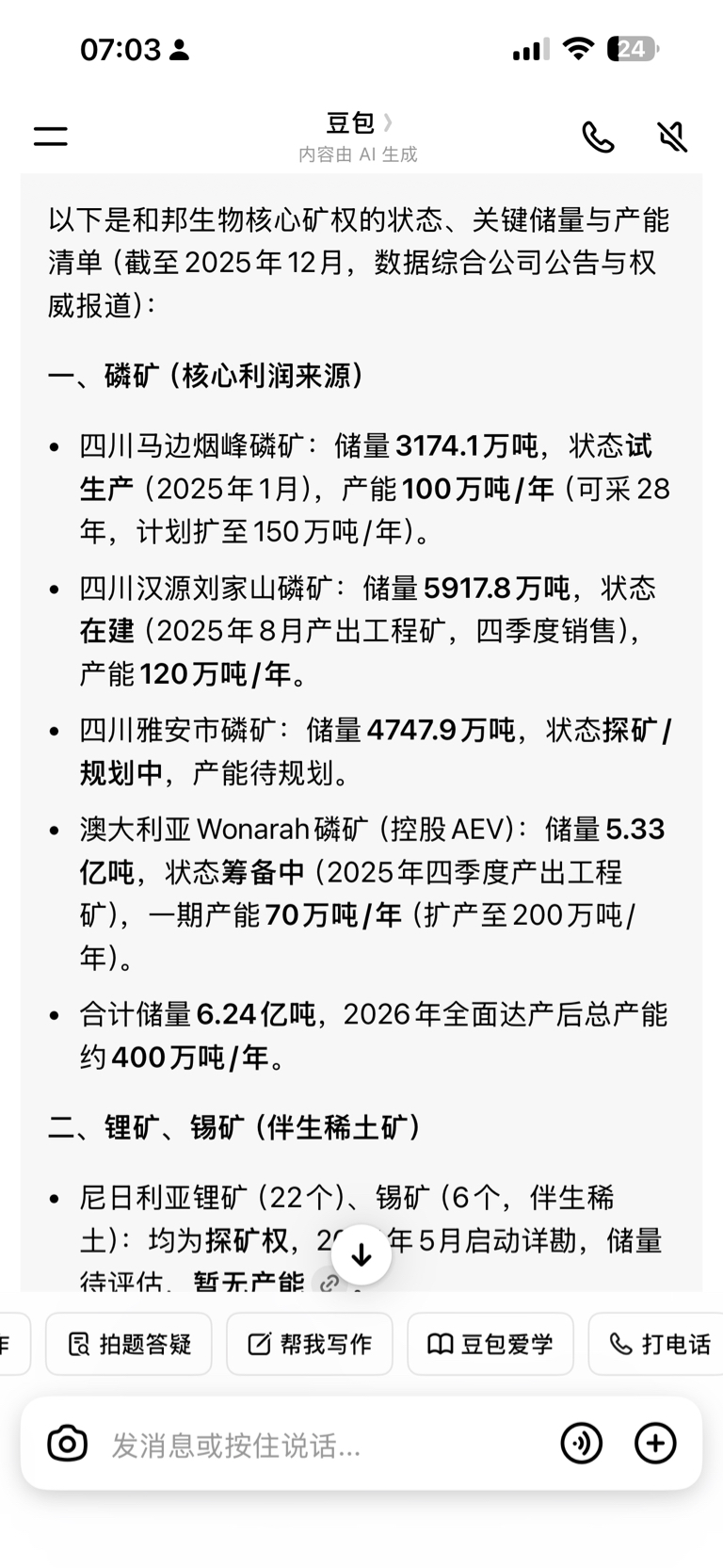 所以说和邦生物改名字一点都不错!现在的估值就是要向矿产靠拢!