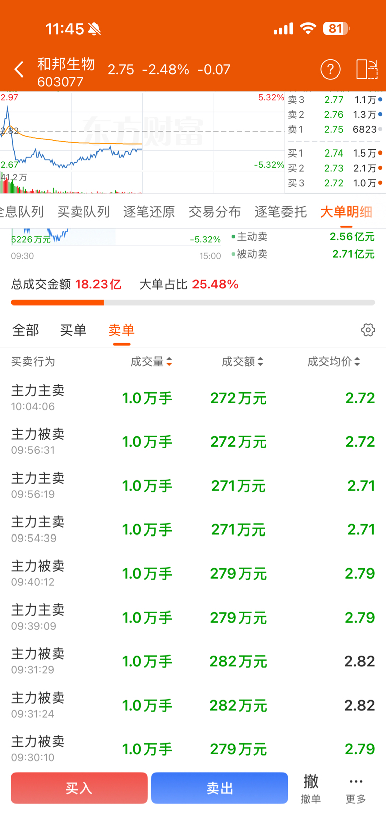 $和邦生物(SH603077)$ 全是唱多的,还好早上跑得快,一套套半年,主力万手单全砸给小散了,业绩暴雷,信披违规,马上st,不要抱有幻想