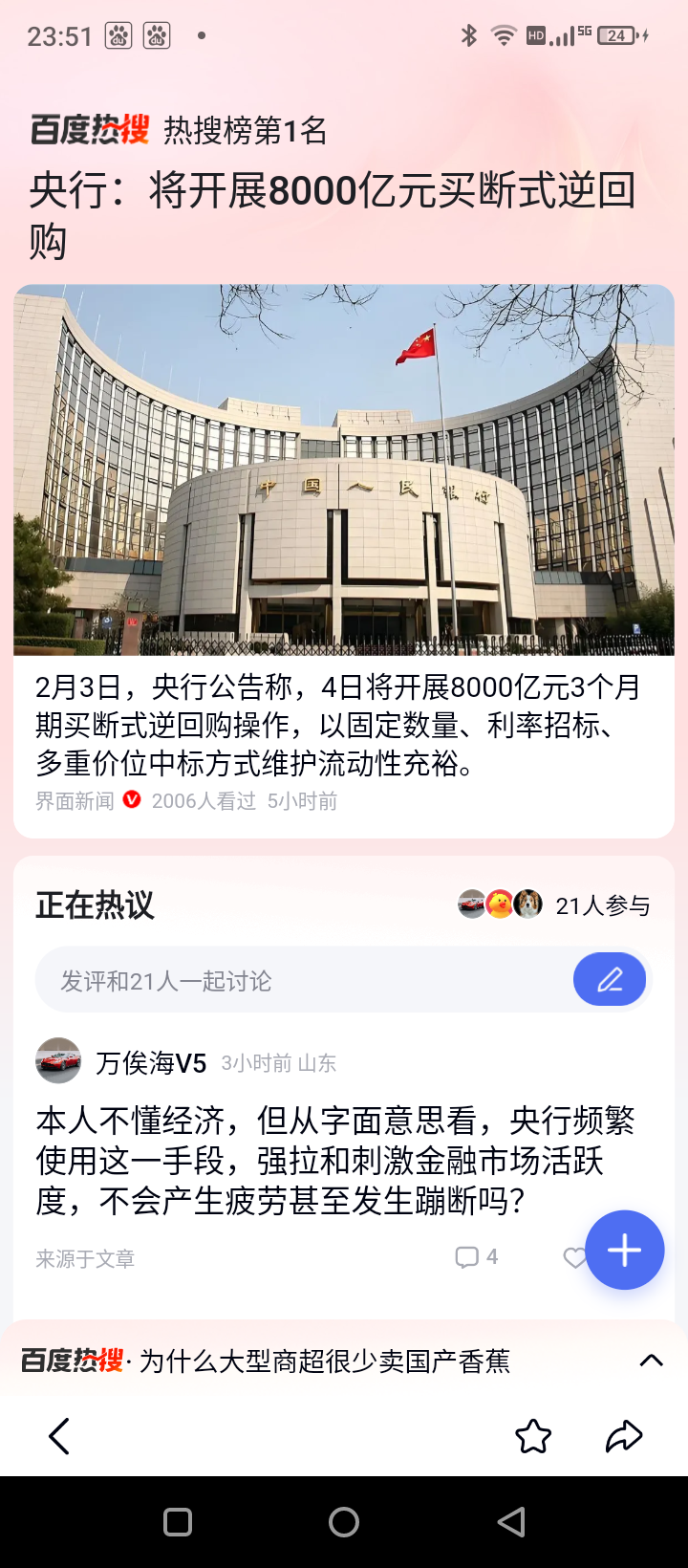 央行宣布 4日9点 向市场投放8000亿元现金 和邦生物涨停板