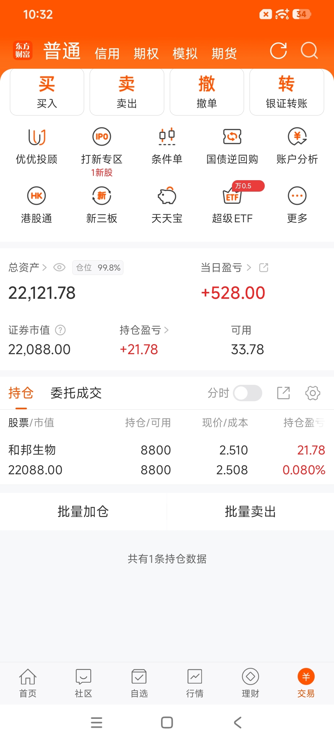 $和邦生物(SH603077)$ 年后在来看了!留8800股留个底仓!钱全转出去过年了!该享受时享受了!