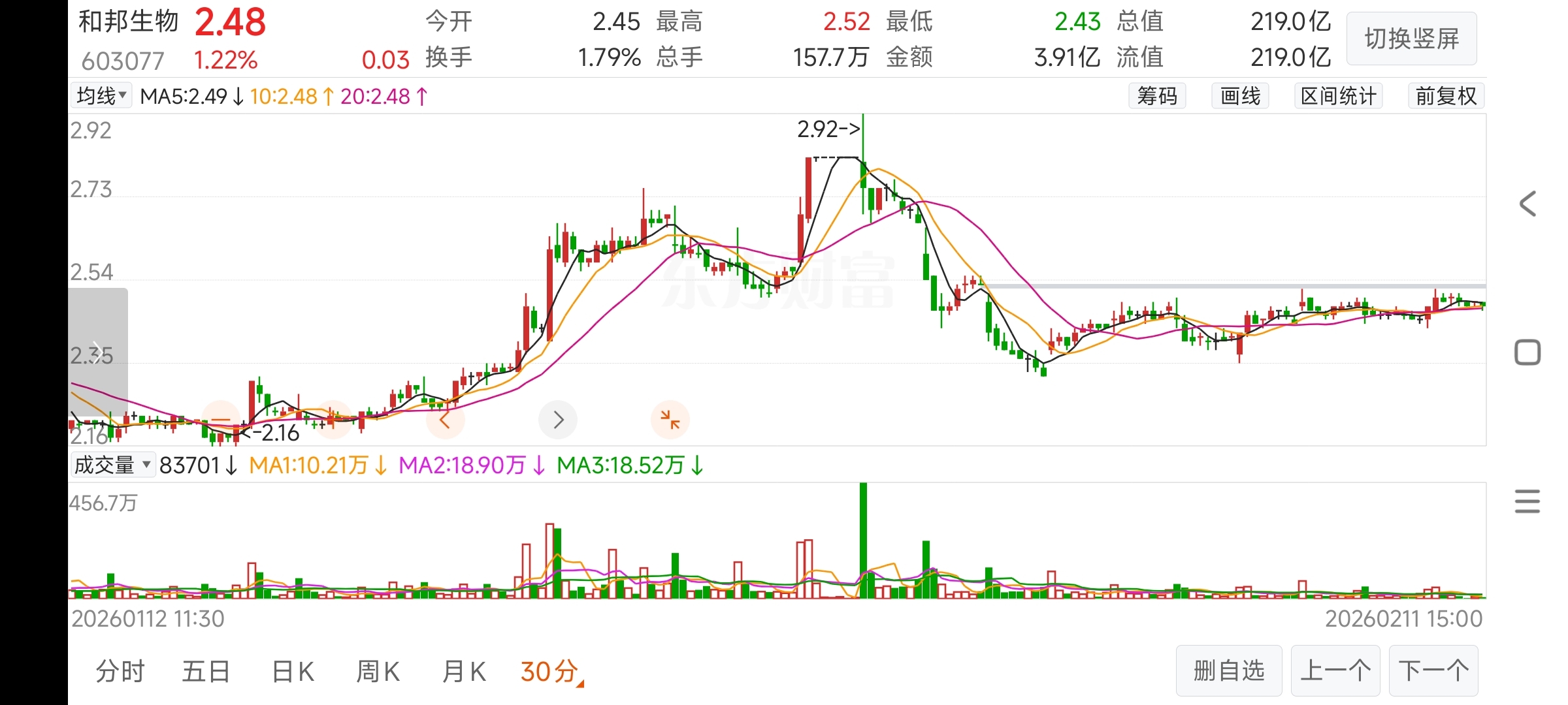 $和邦生物(SH603077)$ 30分钟缺口不好补!