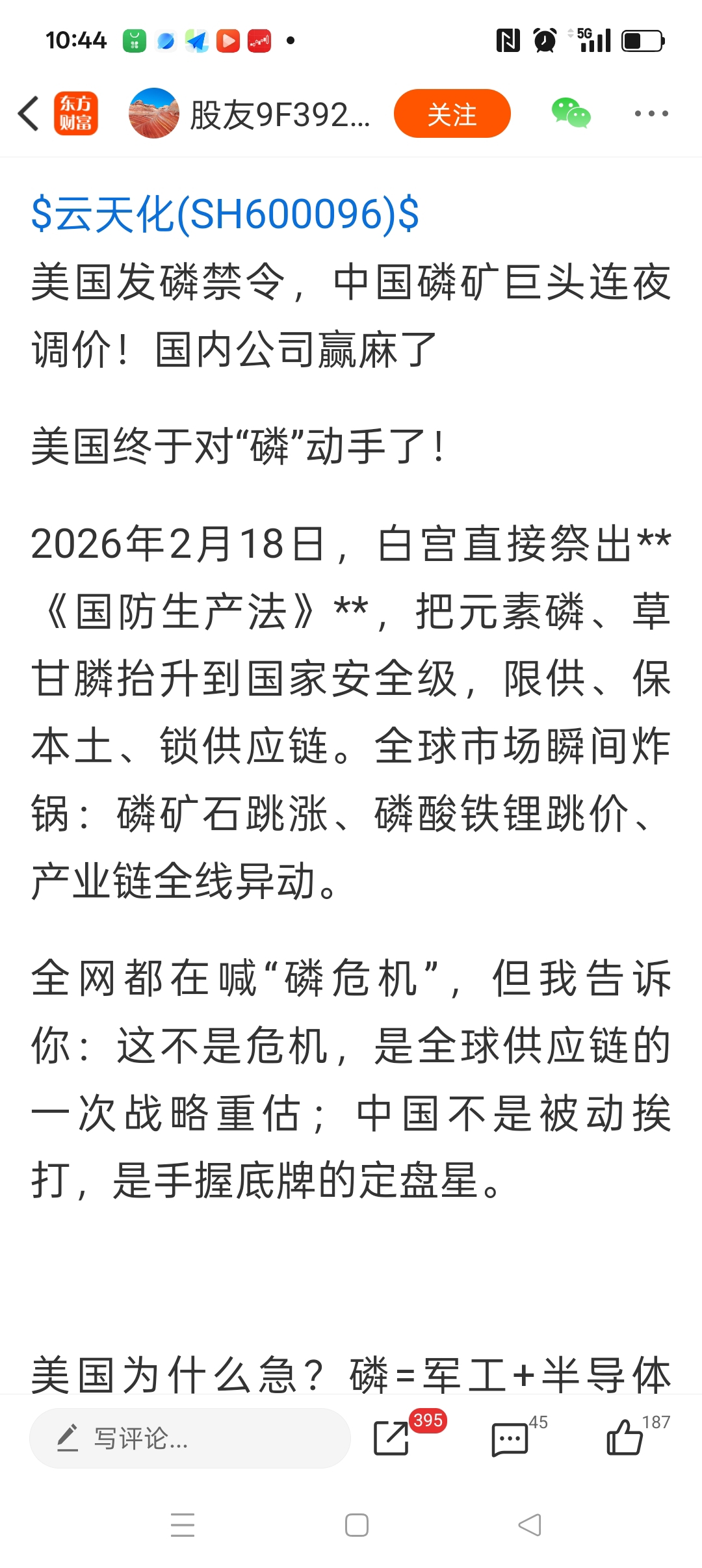 $和邦生物(SH603077)$ 不知道这次能不能起飞,美国对磷和草甘膦出手。静待花开