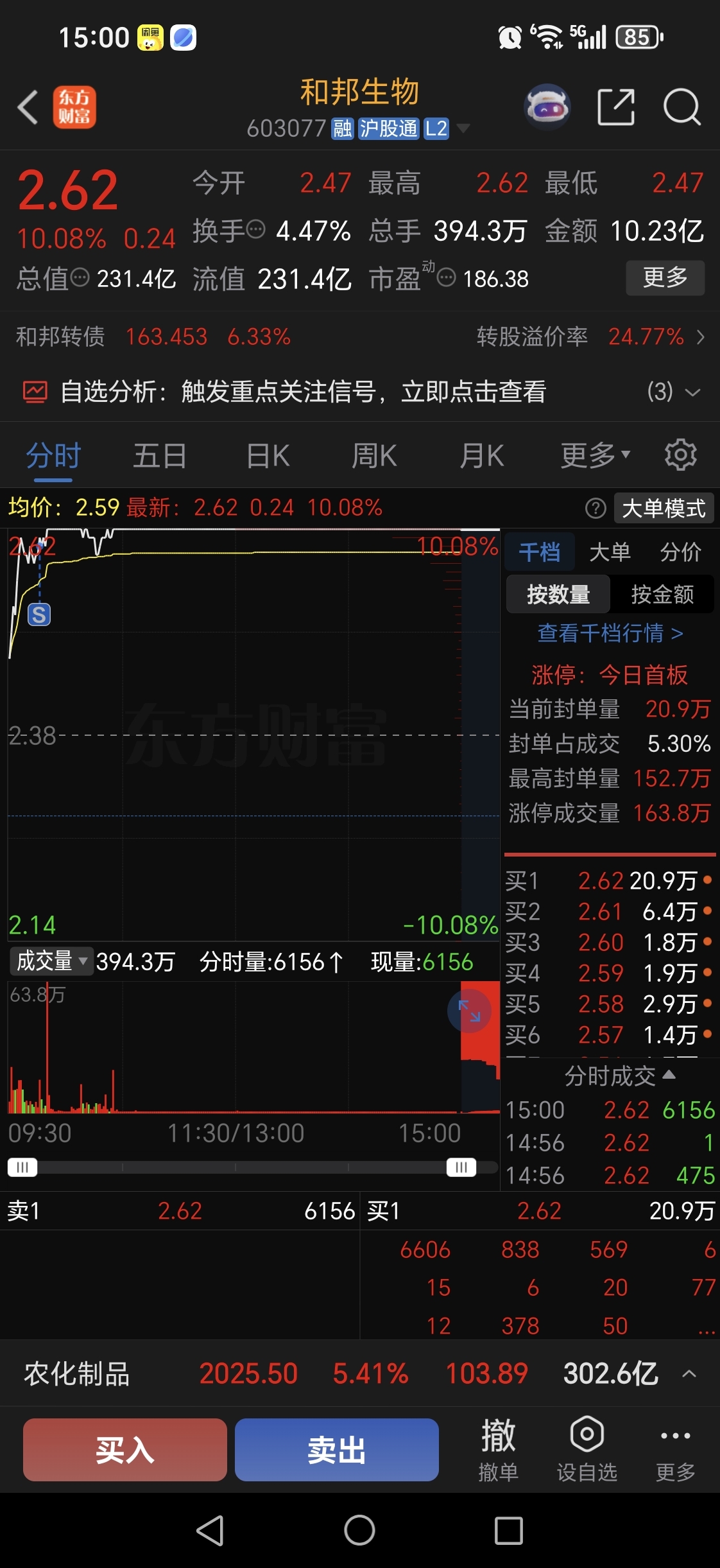 $和邦生物(SH603077)$ 260卖飞了