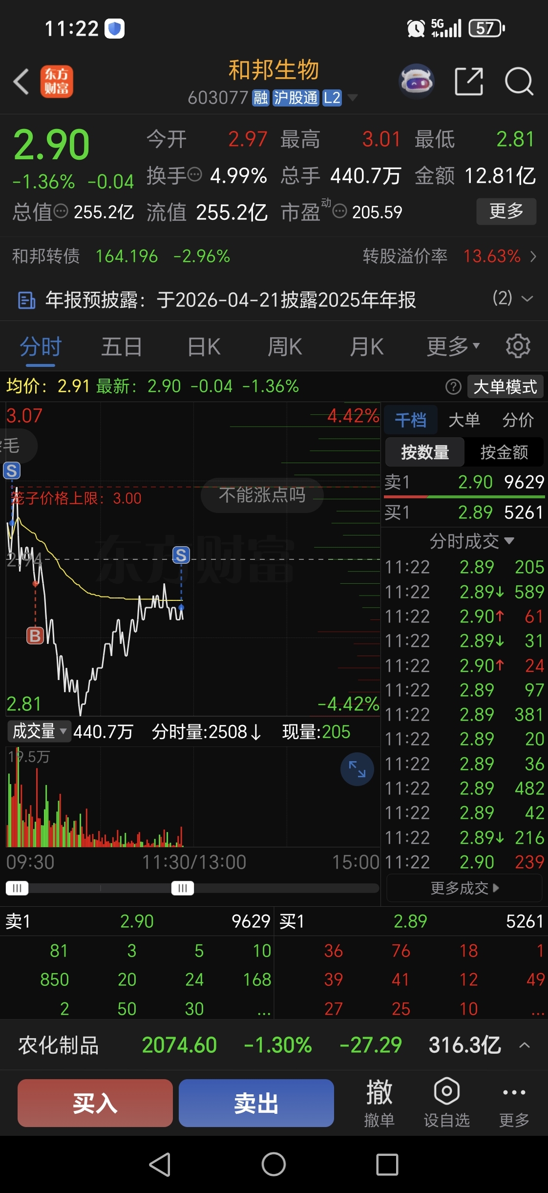 $和邦生物(SH603077)$ 量跟不上,还要跌。