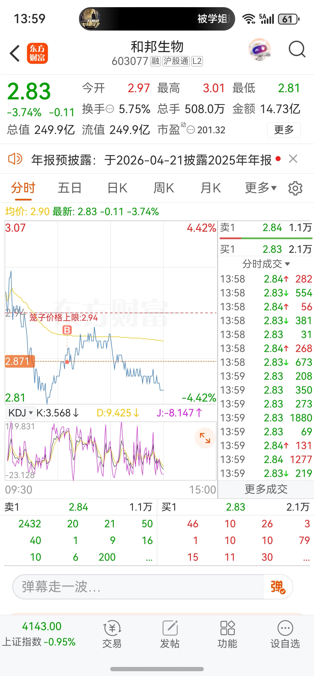 $和邦生物(SH603077)$ 抄底抄了个山顶。