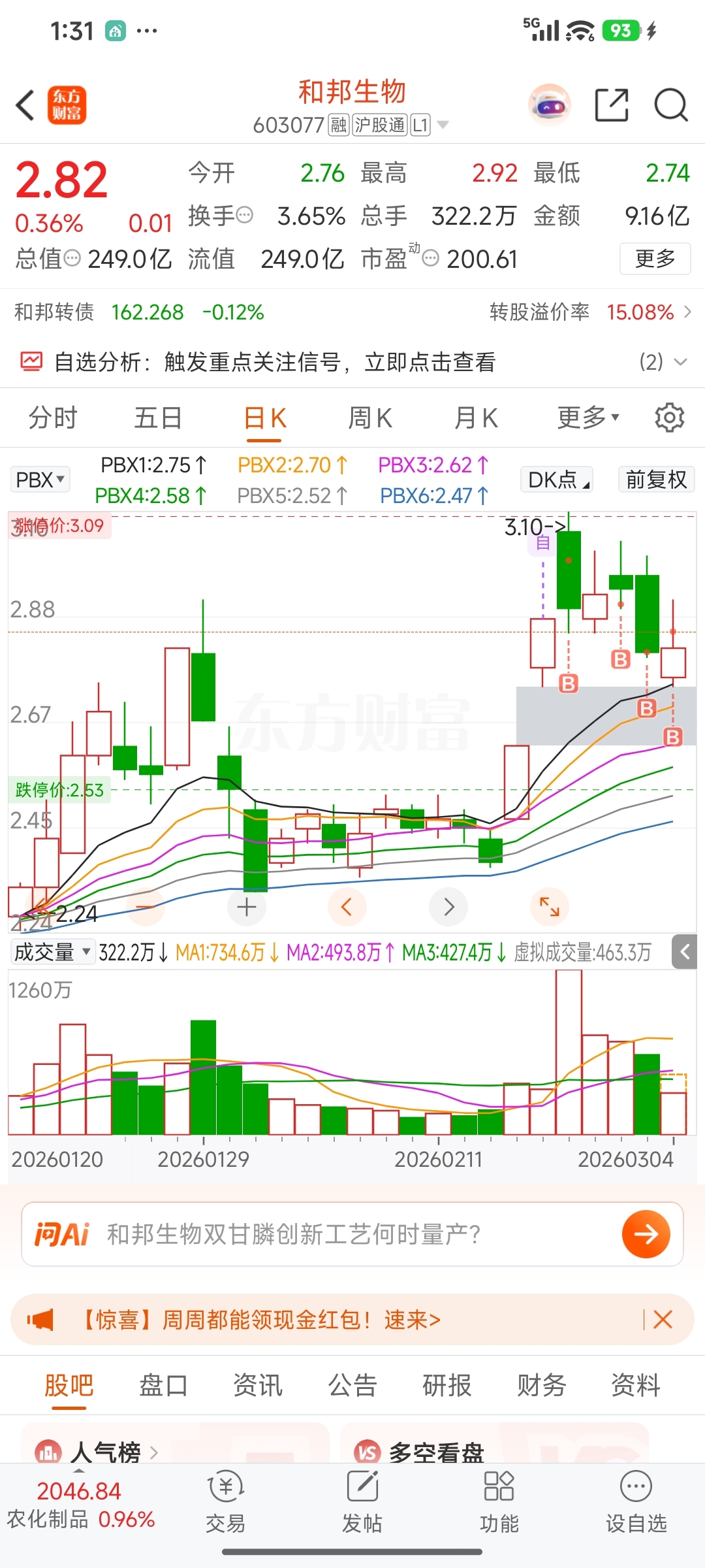 $和邦生物(SH603077)$ 兄弟们最后的子弹都打满了。。。。