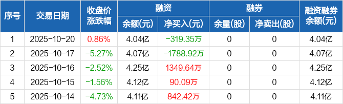 江化微:融资净偿还319.35万元,融资余额4.04亿元(10-20)