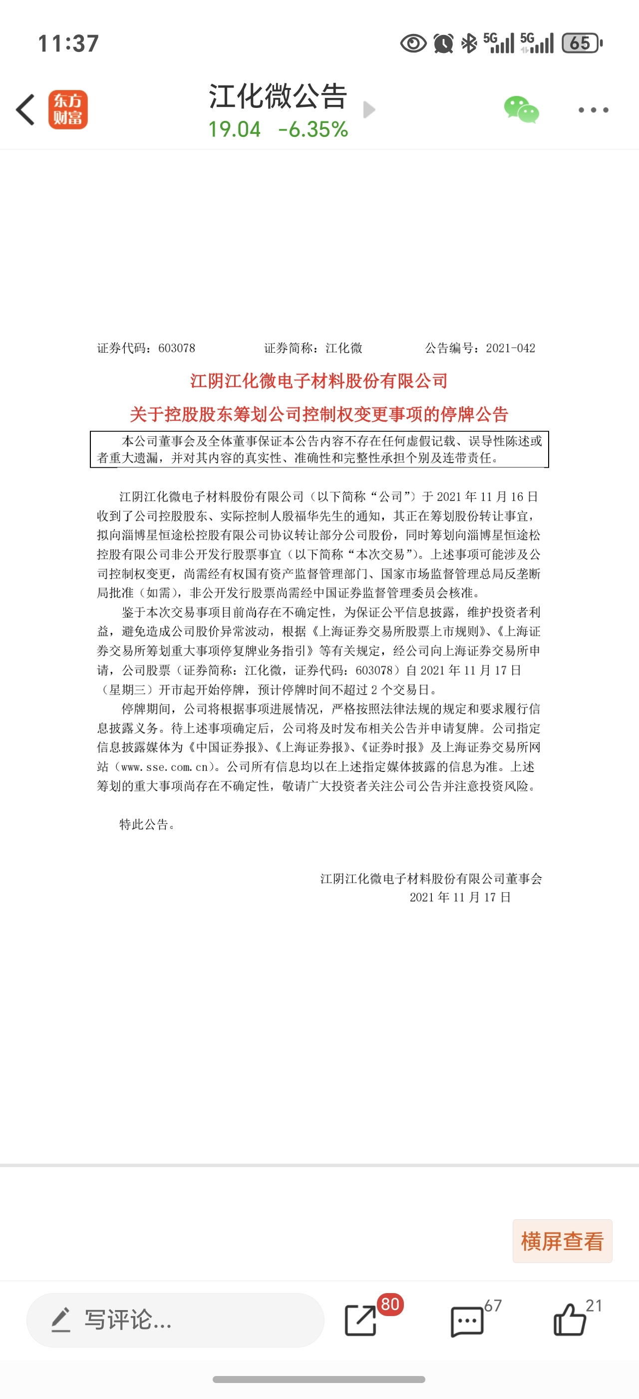 $江化微(SH603078)$ 21年也是发了减持公告,不到半个月就卖了,这次定增和当时情况很像