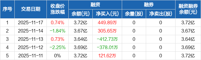 江化微:融资净买入449.89万元,融资余额3.72亿元(11-17)