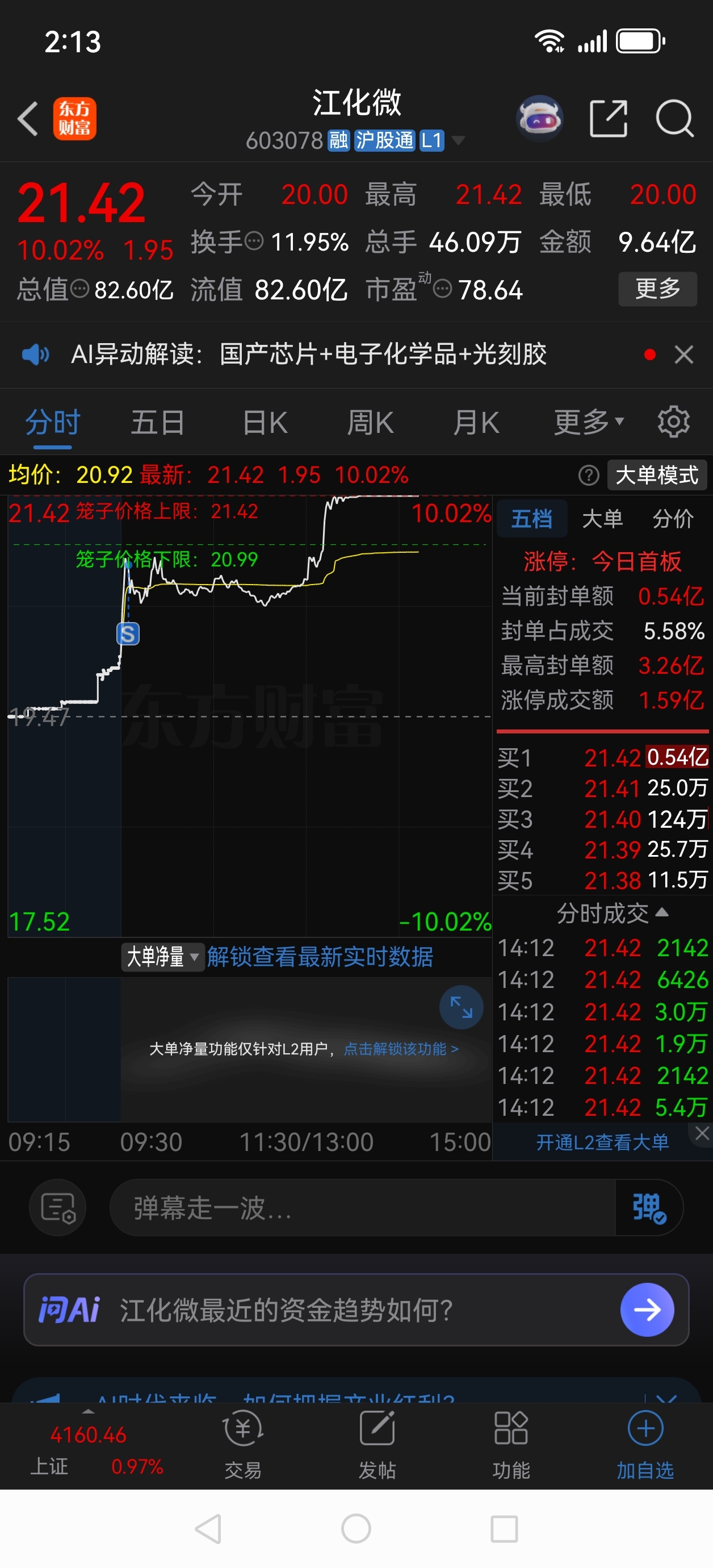 $江化微(SH603078)$ 多一个卖飞的