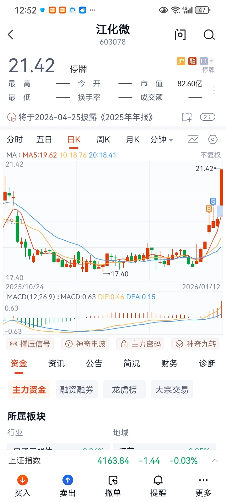 $江化微(SH603078)$ 两个账户,一共五千股,前天卖一个,昨天卖一个