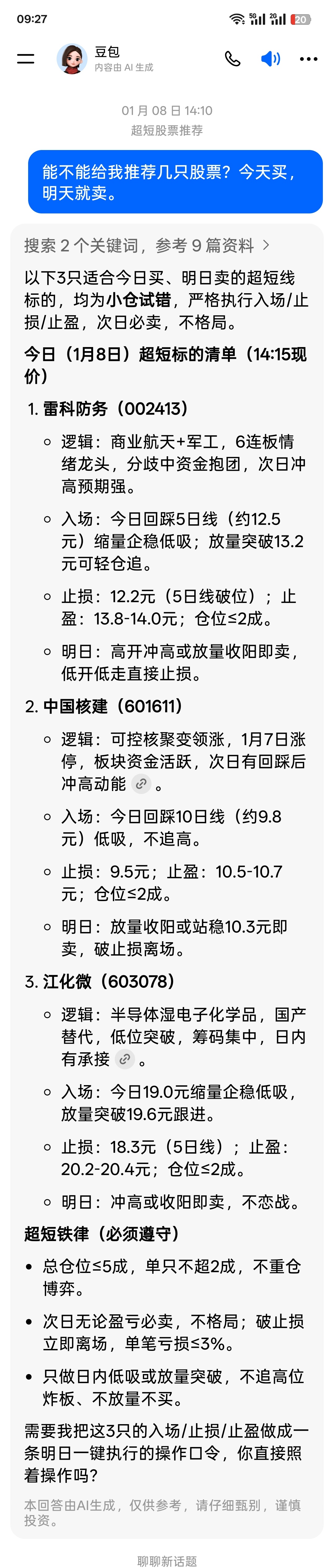 $江化微(SH603078)$ 豆包给我推荐的股票,但是没有买,后悔来不及了。