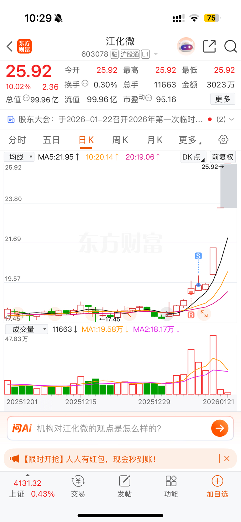 $江化微(SH603078)$ 随便进来打了个野,发生了什么