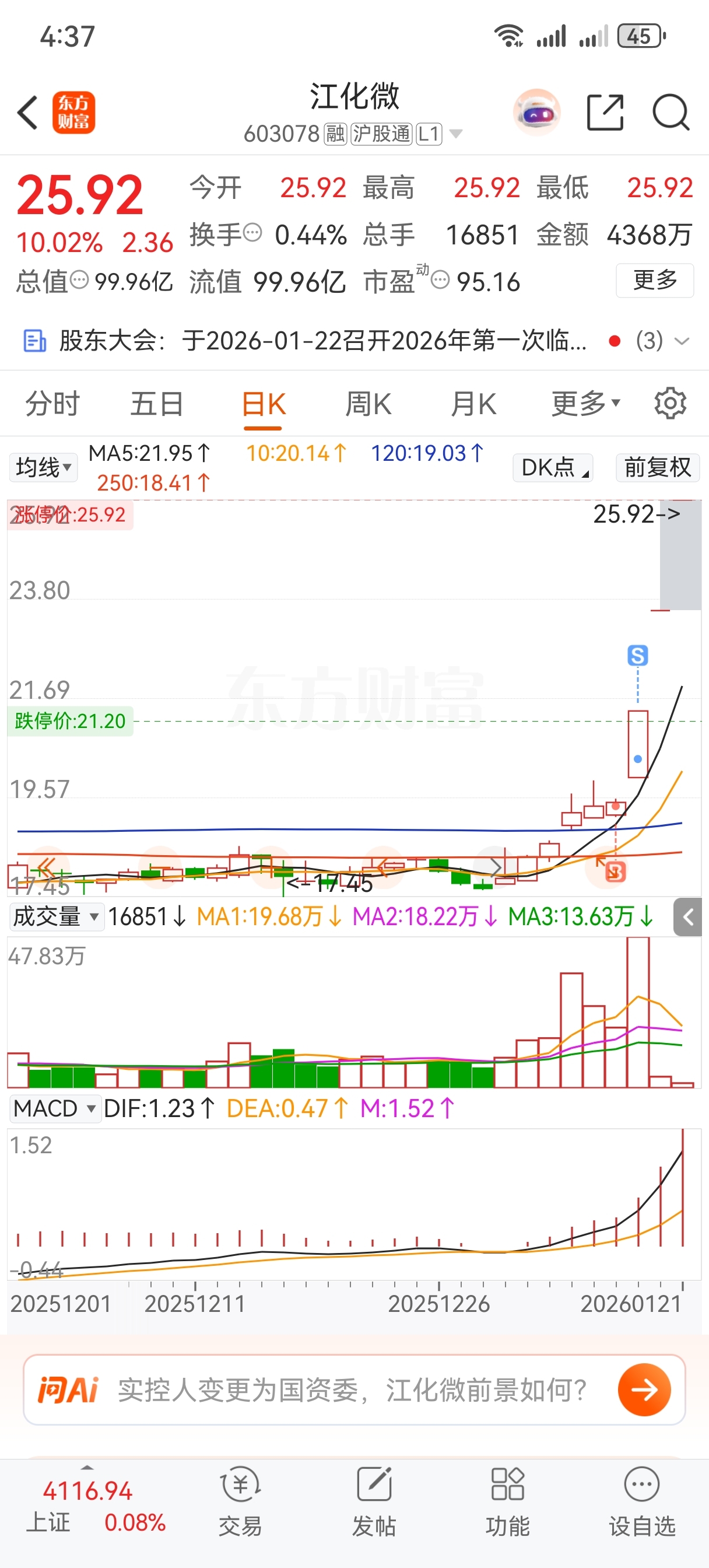 温馨提示: 1.根据《证券法》规定,禁止编造、传播虚假信息或者误导性信息,扰乱证券市场;2.用户在本社区发表的所有资料、言论等仅代表个人观点,与本网站立场无关,不对您构成任何投资建议。用户应基于自己的独立判断,自行决定证券投资并承担相应风险。《东方财富社区管理规定》