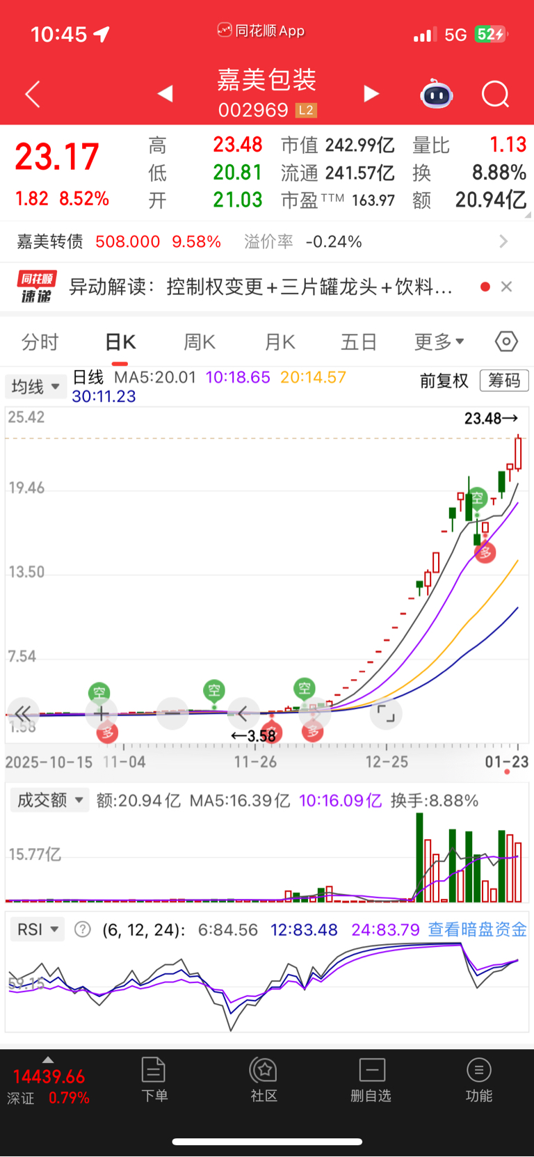 嘉美包装,断板后还一直往上进攻,6倍了,再去看看锋龙18个板,其实嘉美超越了锋龙
