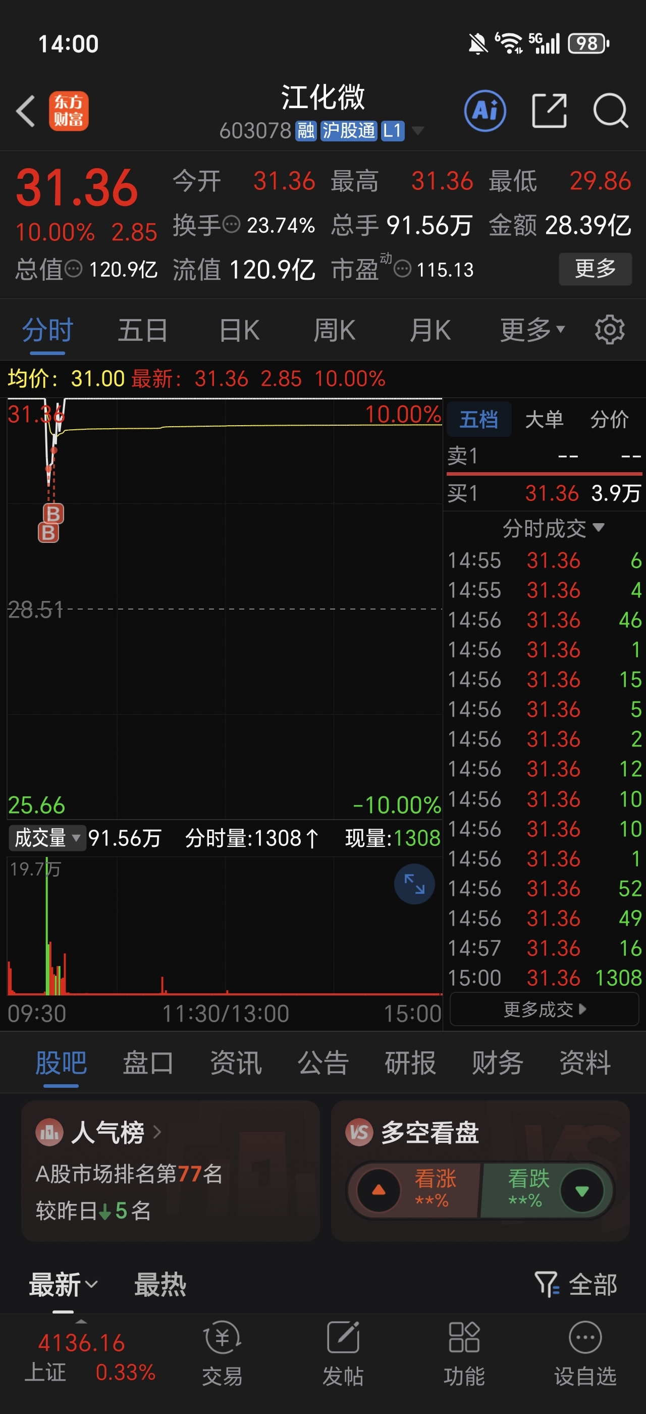 $江化微(SH603078)$ 从业务层面上看 江化微和上海微电子紧密相关 起到互补之效 本着这个原则昨天上午炸板的时候追进去了 不晓得后面会怎么走