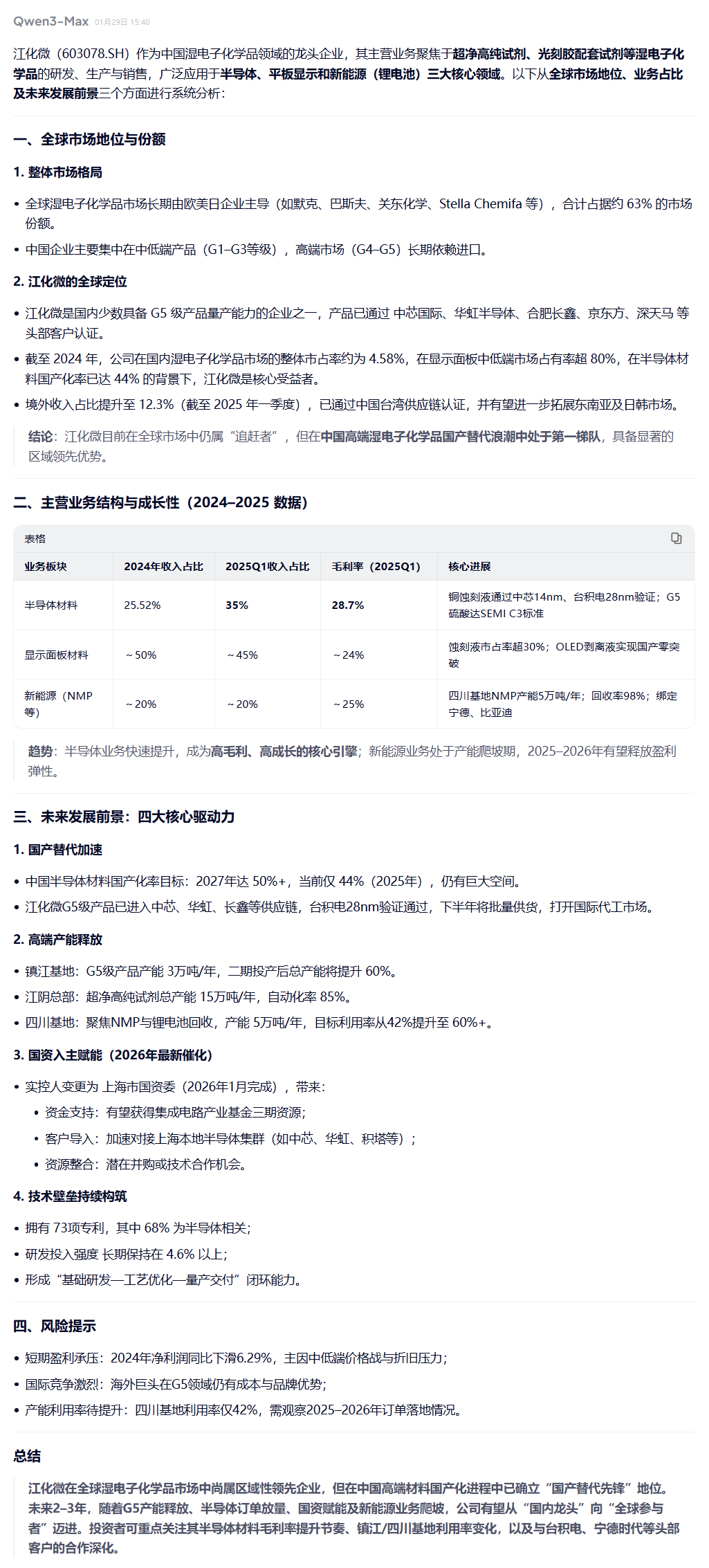 江化微全球地位及未来发展 千问解析