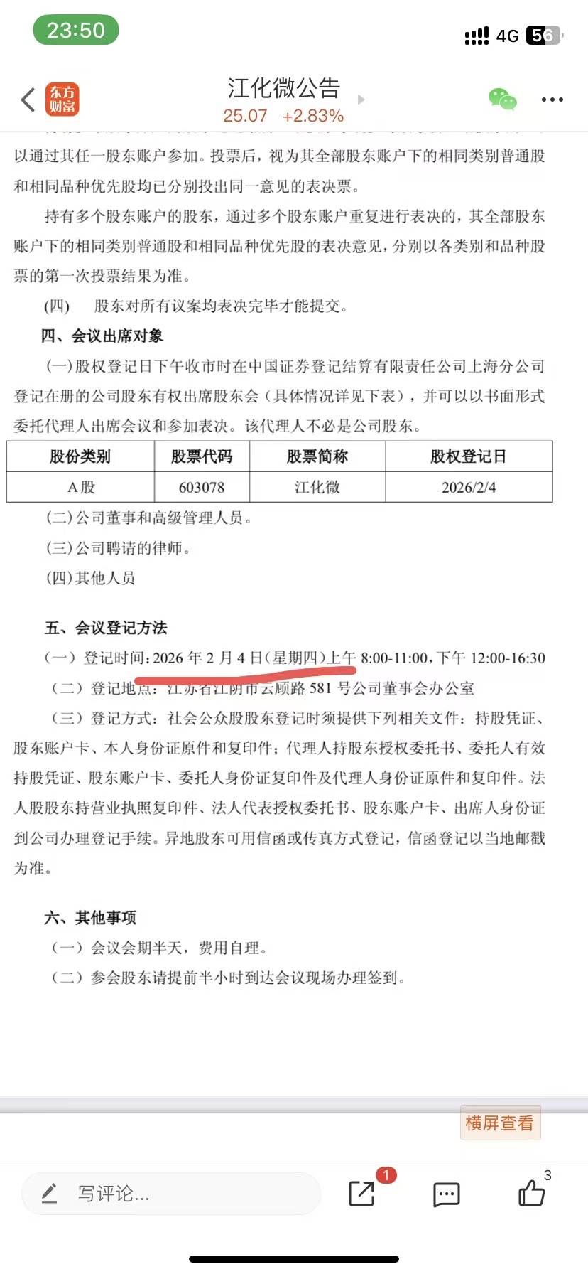 $江化微(SH603078)$ 公司就这样对股民公告吗,有点太不把股民当回事吧,2月4号是周四吗?不是周三吗?这种简单的事应该不是自身能力不行 是敷衍吧 那你选上独董有什么意义呢 ,公司股权转让进展一直没有公告进展,明显也不在意股民意见吧 是不是有公司配合坐庄?