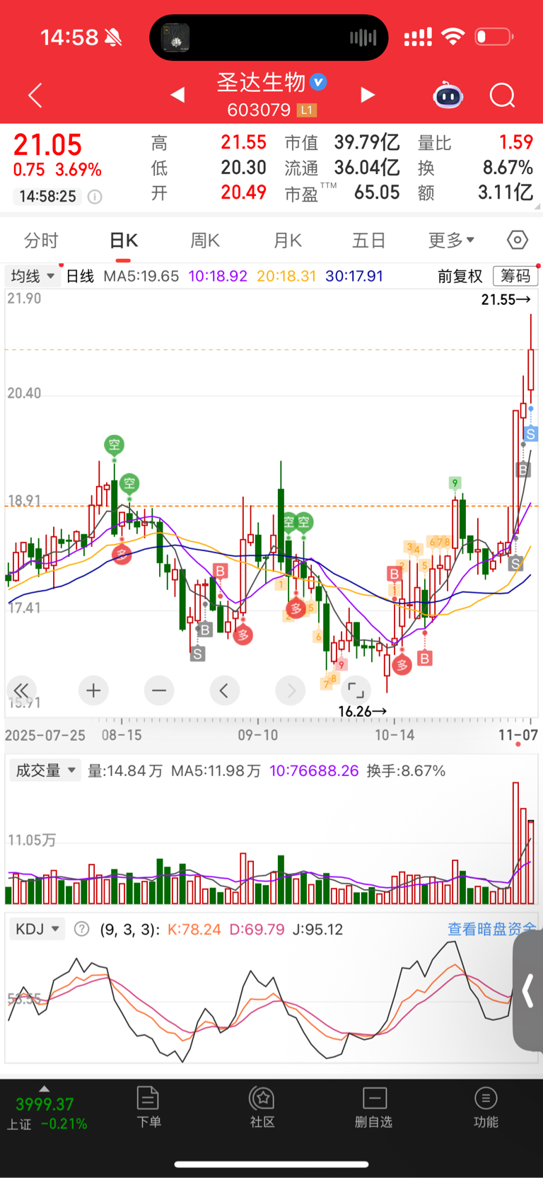 $圣达生物(SH603079)$ 格局到最后还是卖了一半,虽然看好下周的表现,但是还有机会,稳住利润最重要。