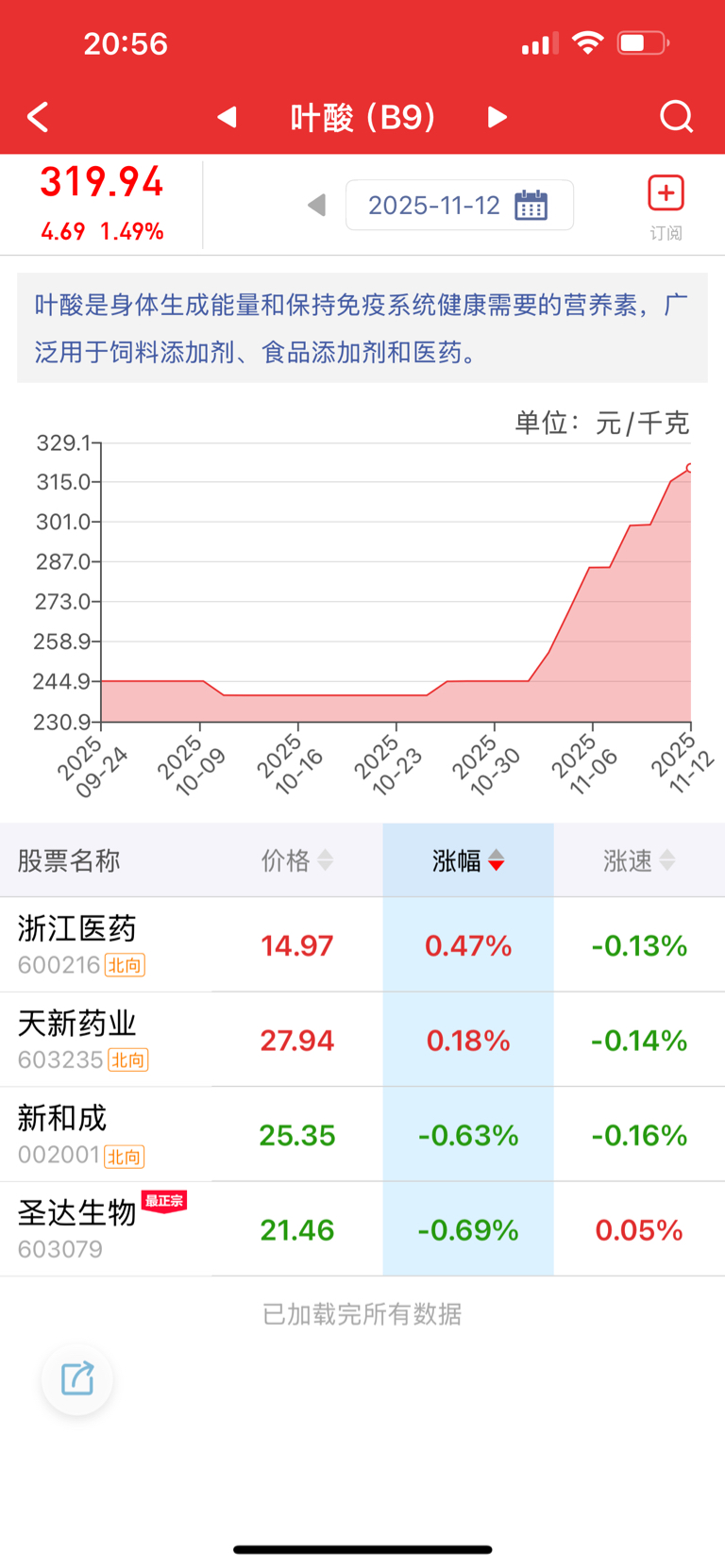 最正宗的叶酸概念股,叶酸最近一个月涨幅超过30%,圣达生物也动一动吧
