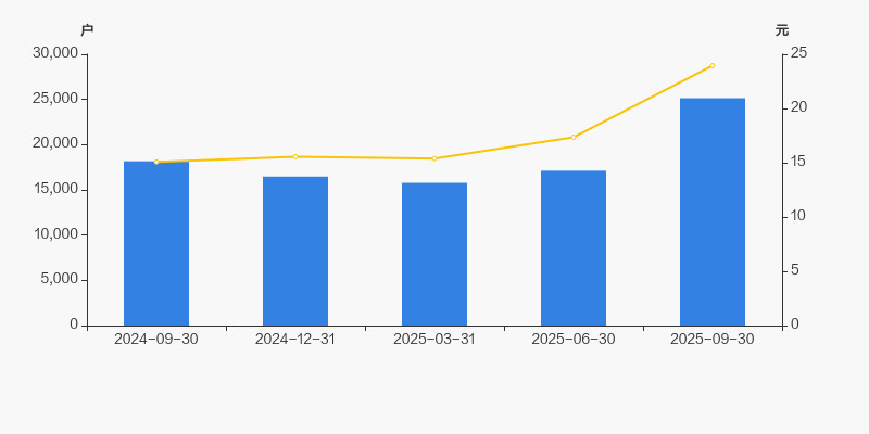 2024年9月30日至今,公司股东户数显著增长,区间涨幅为38.41%。2024年9月30日至2025年9月30日区间股价上涨58.92%。