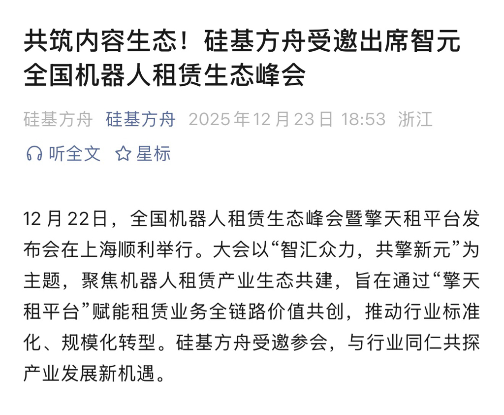$大丰实业(SH603081)$ 硅基方舟受邀出席智元全国机器人租赁生态峰会