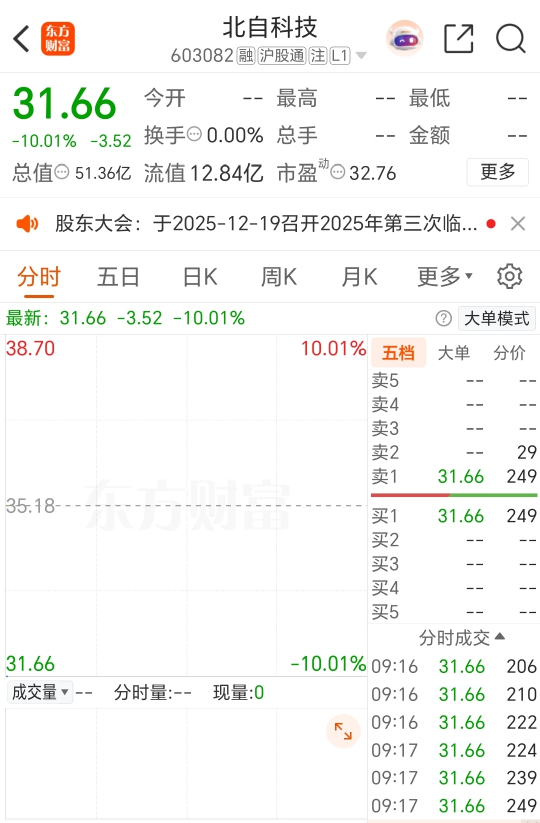 $北自科技(SH603082)$ 跌停了?