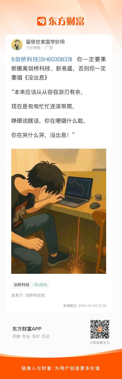 温馨提示: 1.根据《证券法》规定,禁止编造、传播虚假信息或者误导性信息,扰乱证券市场;2.用户在本社区发表的所有资料、言论等仅代表个人观点,与本网站立场无关,不对您构成任何投资建议。用户应基于自己的独立判断,自行决定证券投资并承担相应风险。《东方财富社区管理规定》