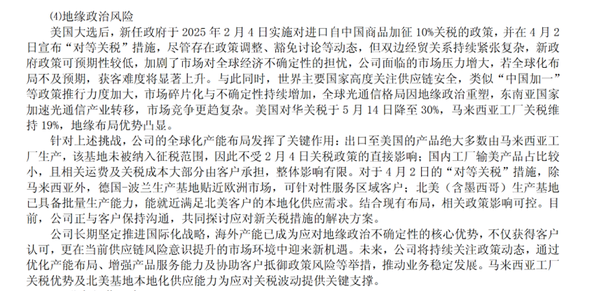 国际化战略、海外产能已经成为应对政治不确定性的核心优势,不仅获得客户认可,更能迎来市场新机遇。