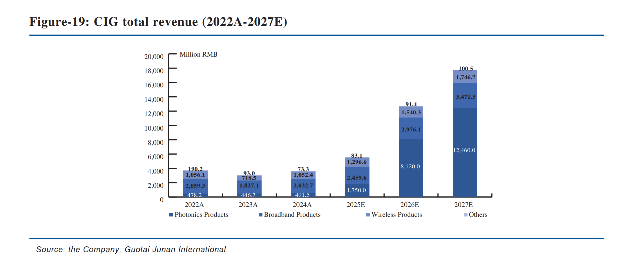 国君的研报,营收:2025E达55亿元,2027E突破177亿元;其中2027年光模块收入为124.6亿元;