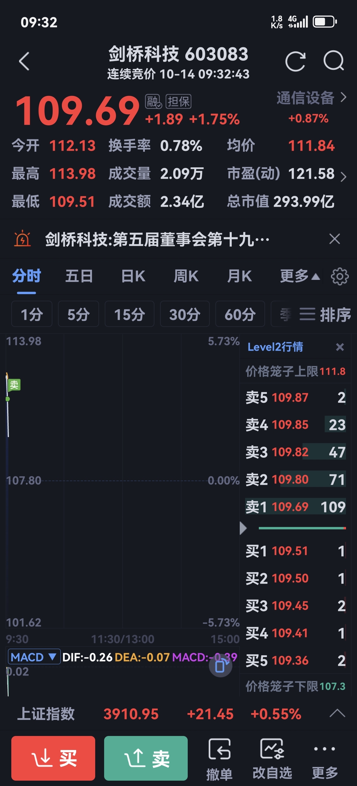 $剑桥科技(SH603083)$ 先跟着汪汪队112.08走了,留下的发财