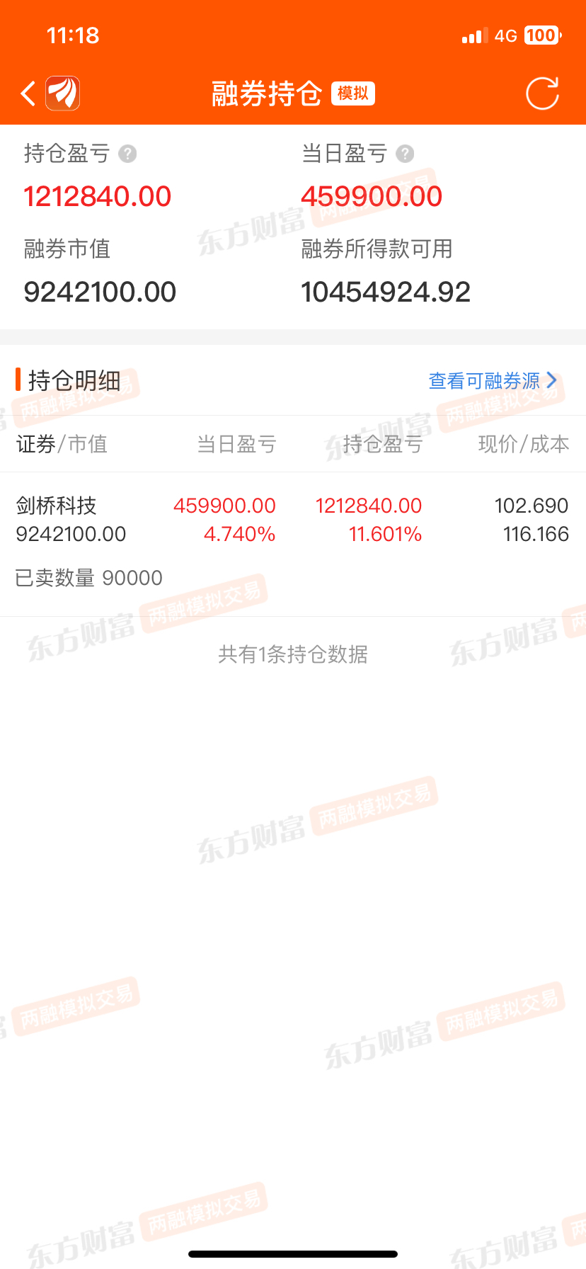 模拟盘翻倍了剑桥科技空在高点了