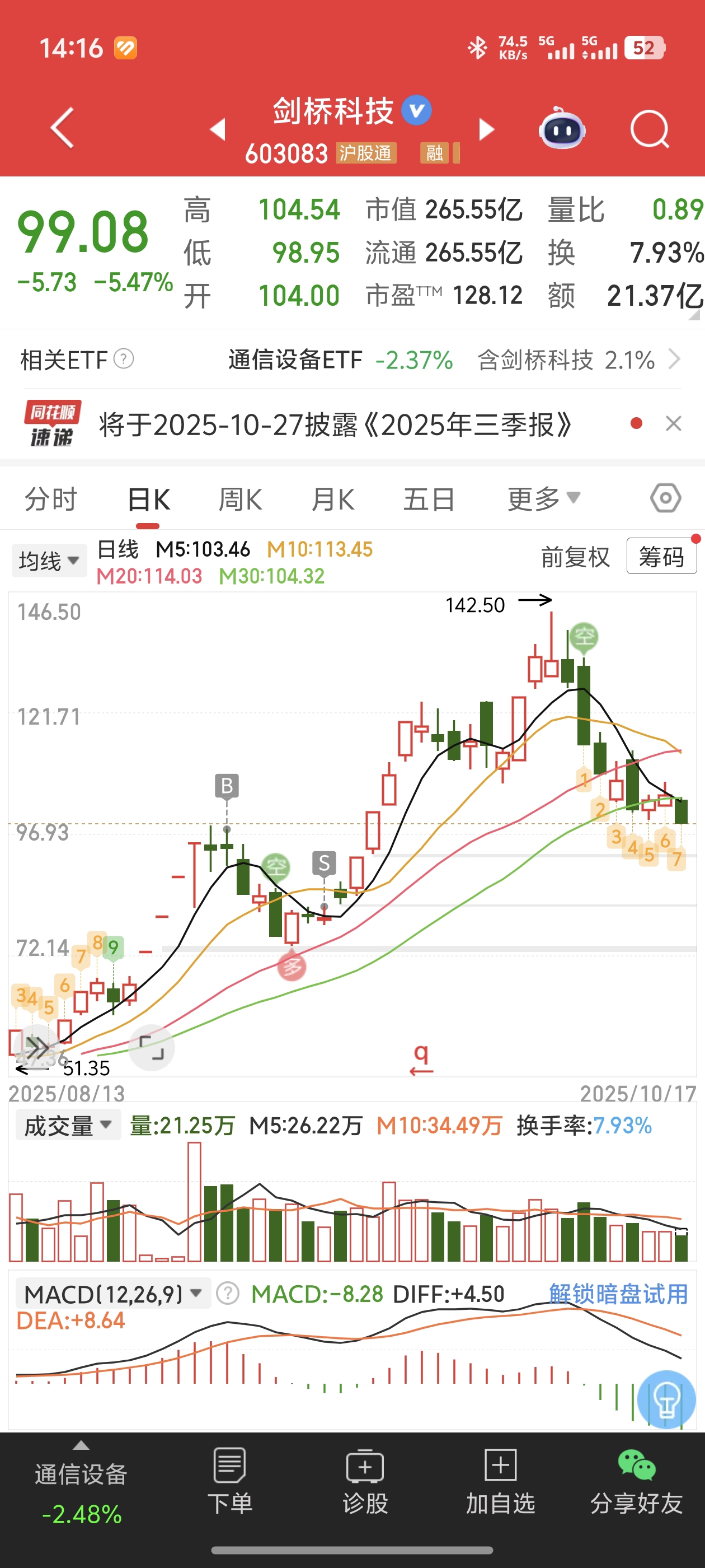 $剑桥科技(SH603083)$ 一辈子的痛,从这次之后就一直亏了