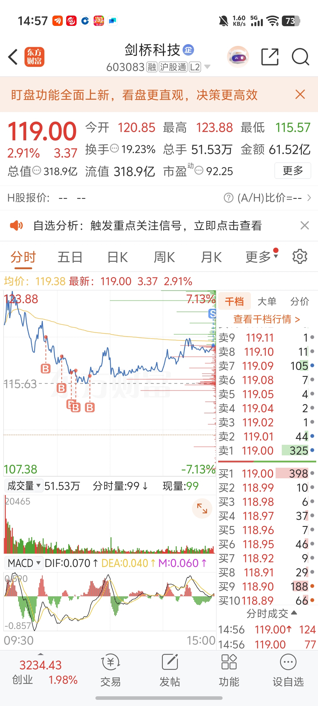 $剑桥科技(SH603083)$ 我走了 你可以拉了 买不完