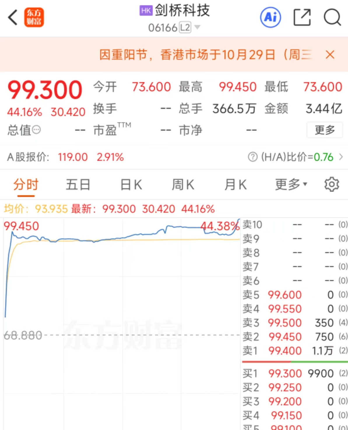 $剑桥科技(SH603083)$ 暗盘大涨,而且成交额有3亿多,其他三家都是在1亿的水平,剑桥这波属于独一档,而且在大量成交的情况下,暗盘股价基本是一路上涨的,充分说明了资金对剑桥的渴望程度,明天稳了,坐等A+H齐飞!