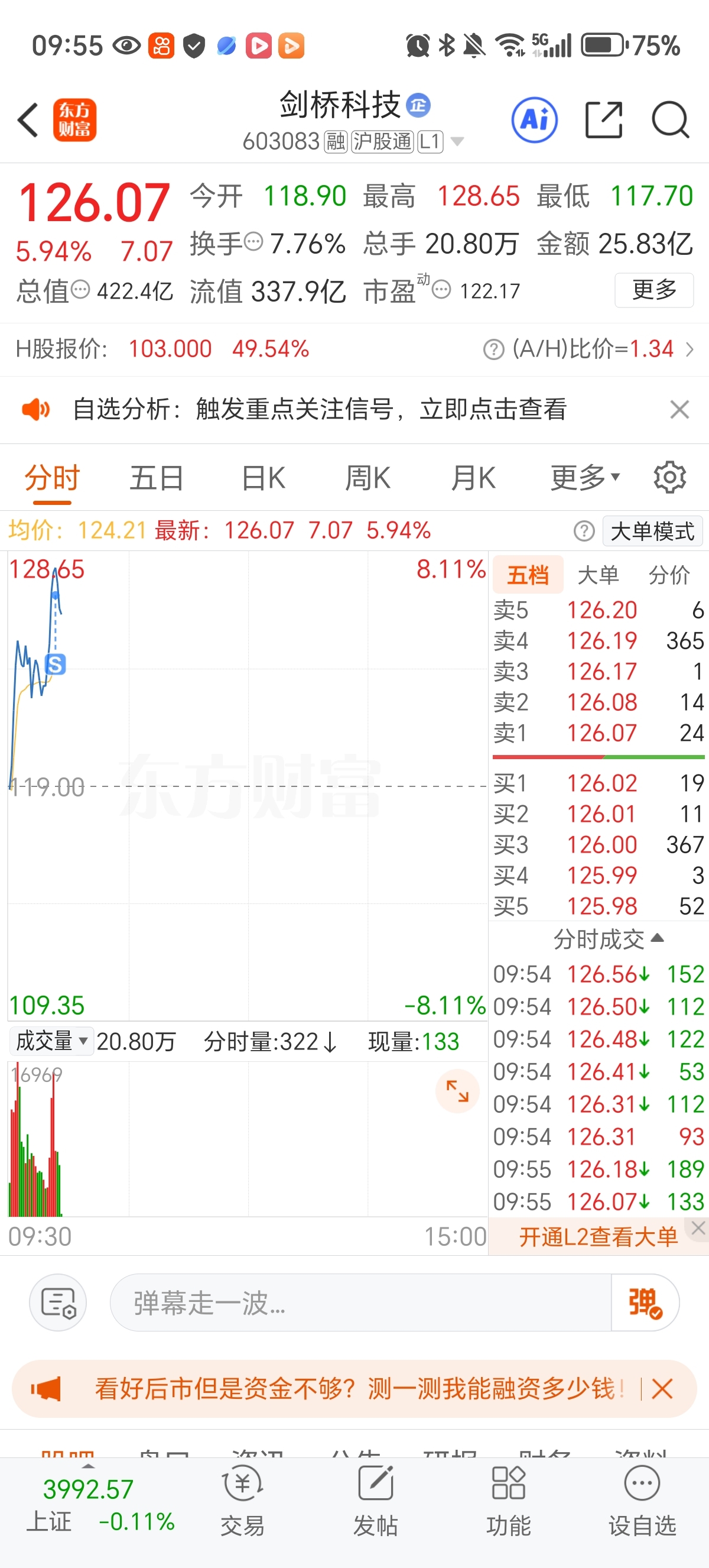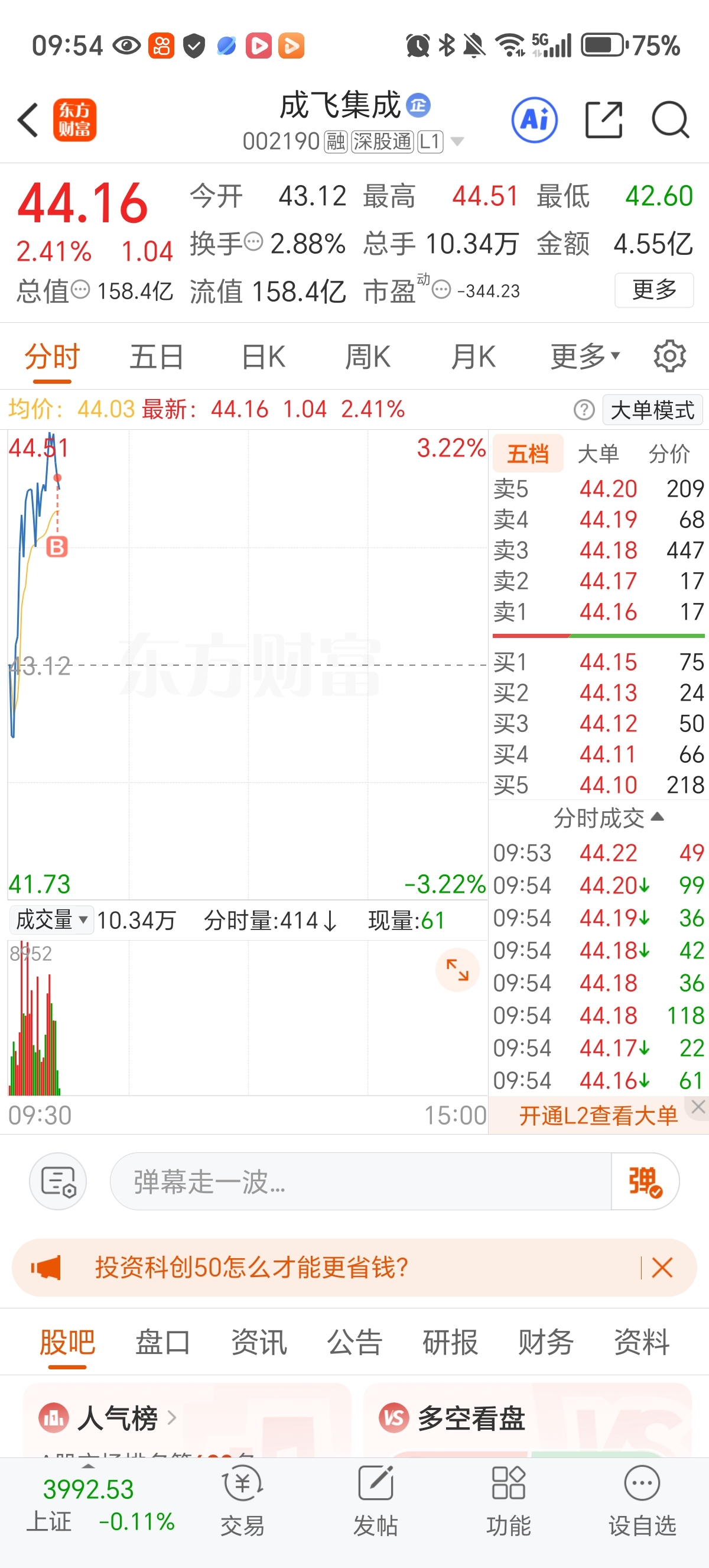 昨天加仓卖出!买进成飞集成和长城军工!